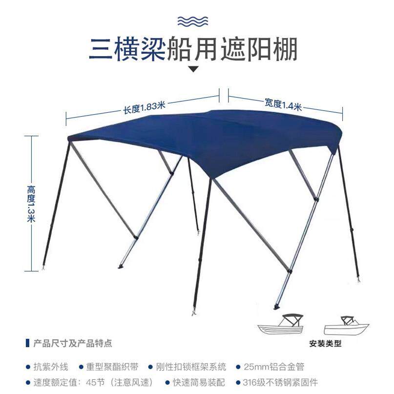 船用遮阳棚玻璃钢艇高速快艇铝合金船用遮雨棚冲锋舟太阳棚