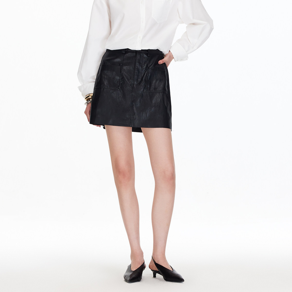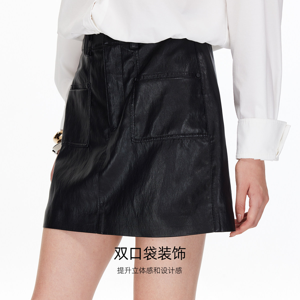 Vero Moda半身裙2025秋季新款PU双口袋A字短裙时髦325316033