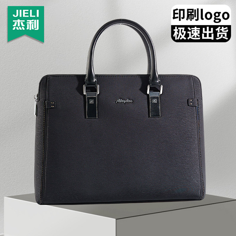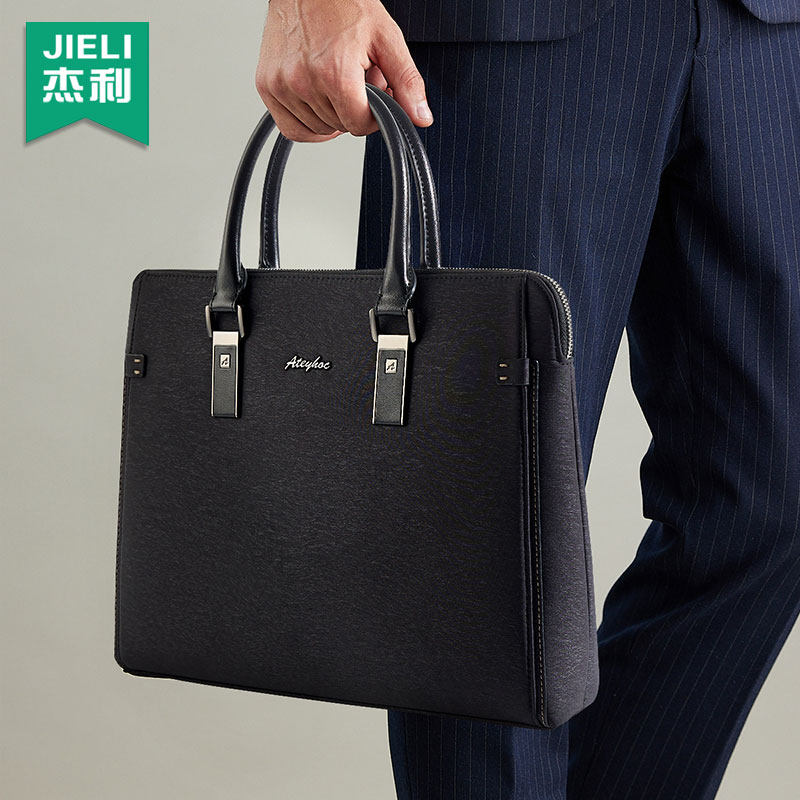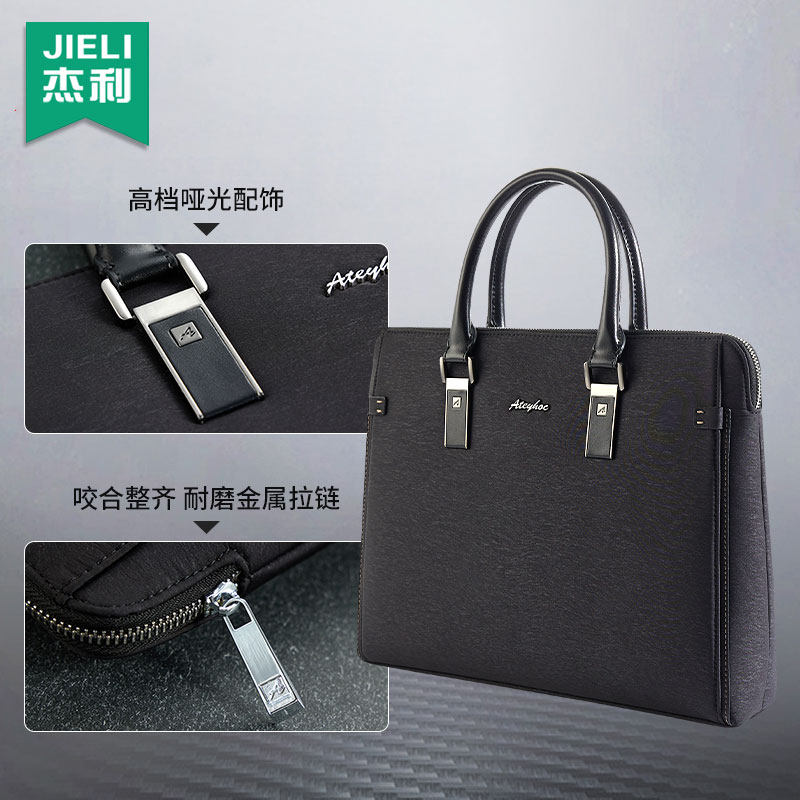 杰利公文包商务男士款两用手提多功能大容量a4文件包手拿携带资料会议包帆布文件袋公文袋办公拉链式定制印刷