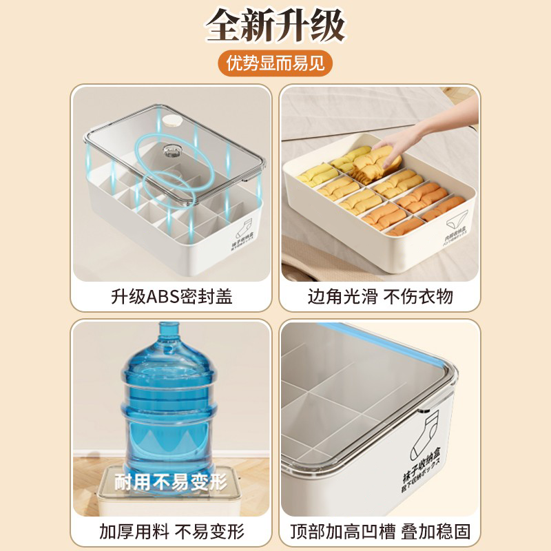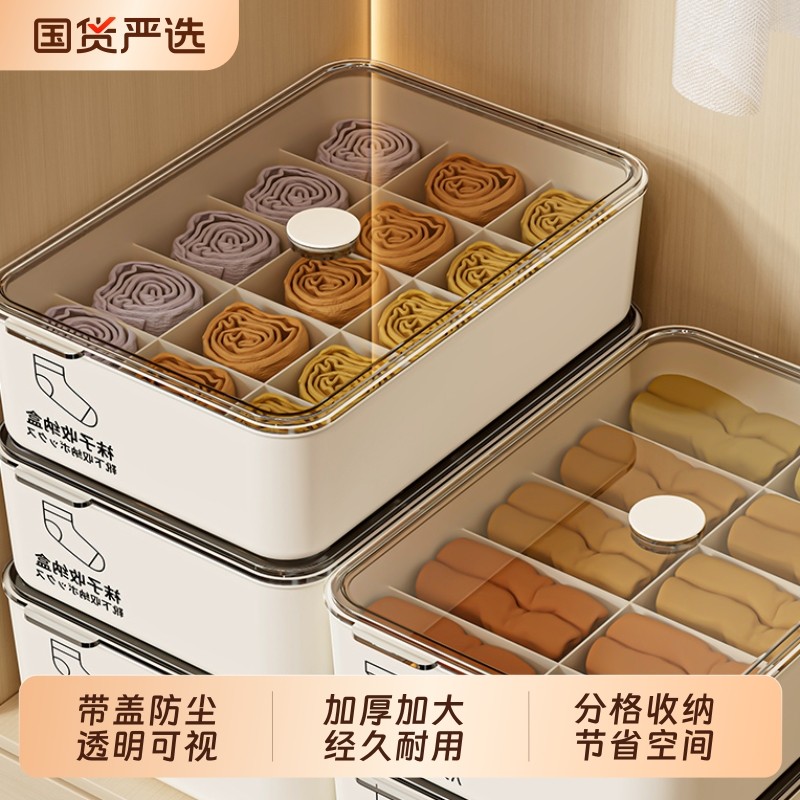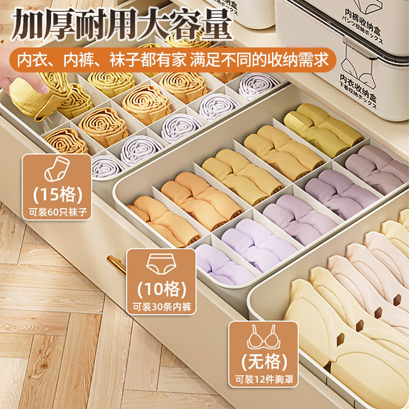 内衣收纳盒袜子内裤三合一家用贴身衣物整理箱衣柜抽屉分隔防尘盒