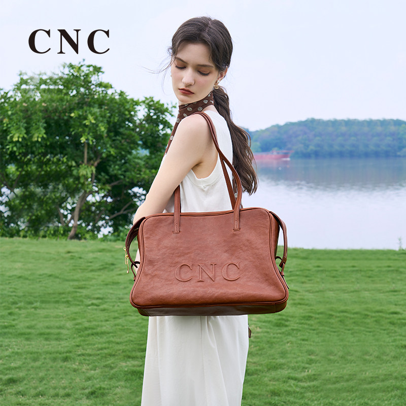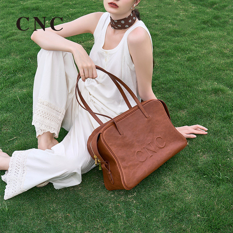 CNC设计款吐司包女头层牛皮通勤大容量单肩保龄球包包