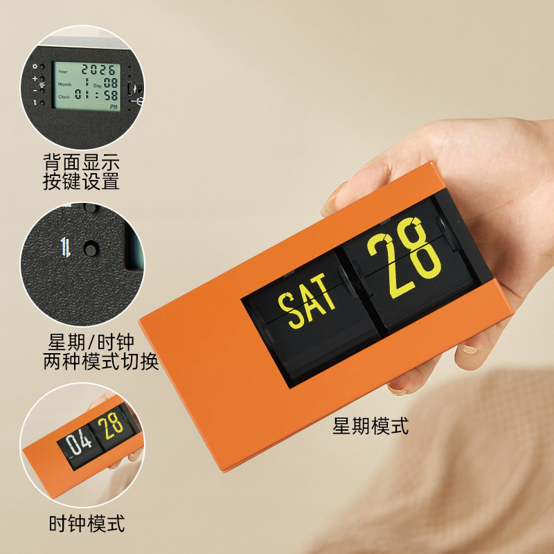 创意星期日历二合一充电自动翻页带灯钟表复古客厅摆件机械时钟
