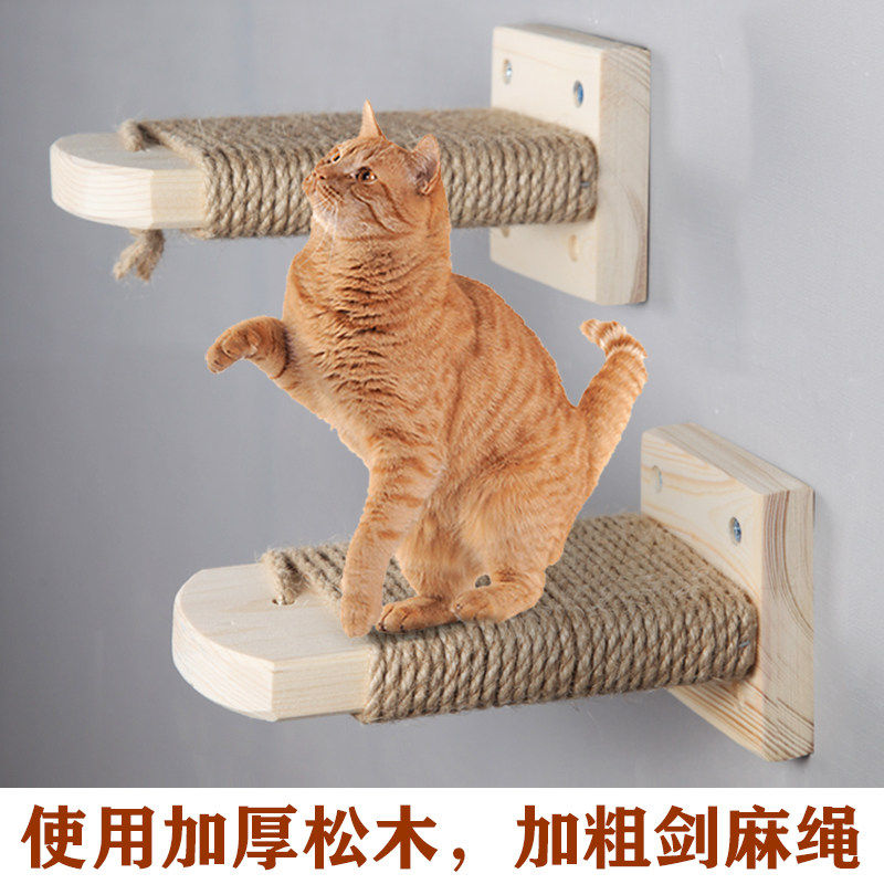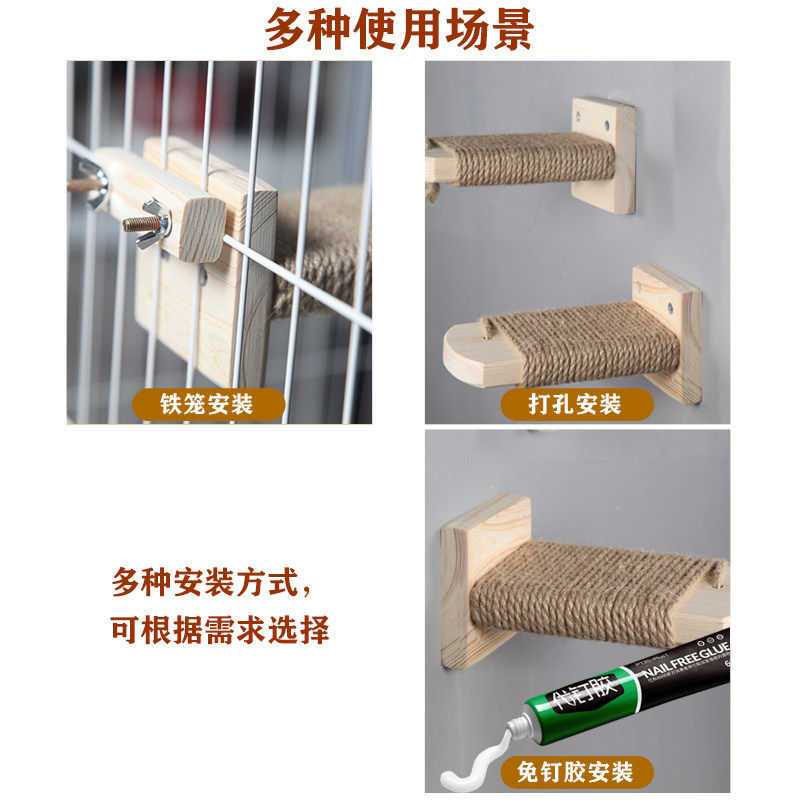 猫爬梯壁挂免钉胶实木猫爬架楼梯免打孔猫跳台不占地设计
