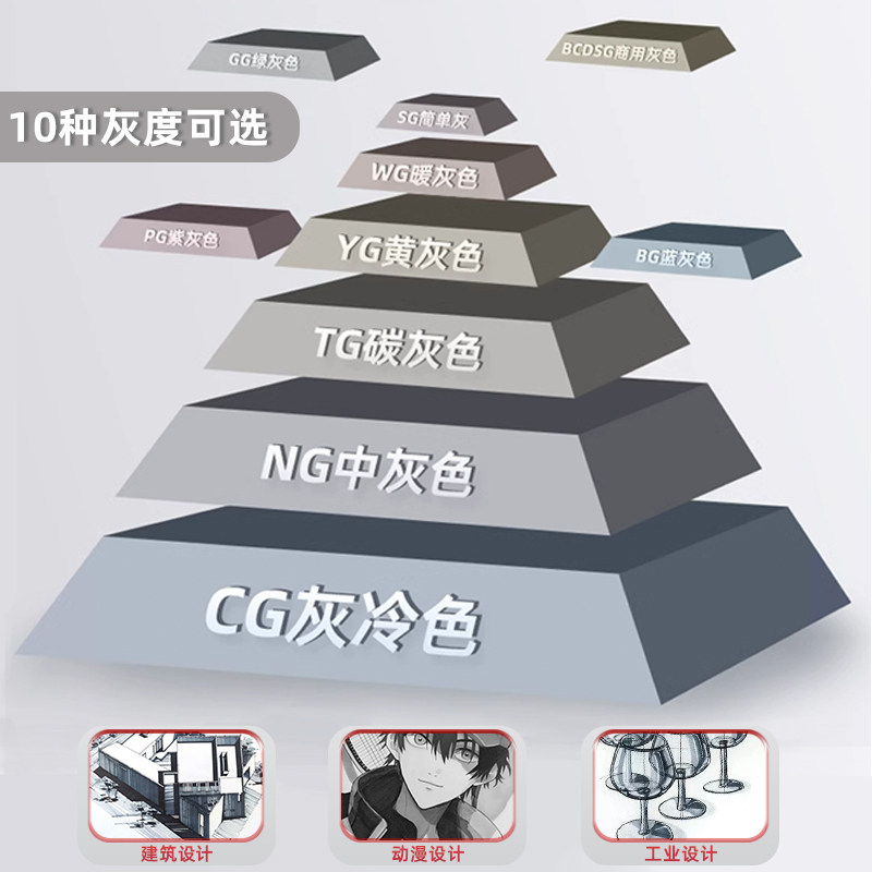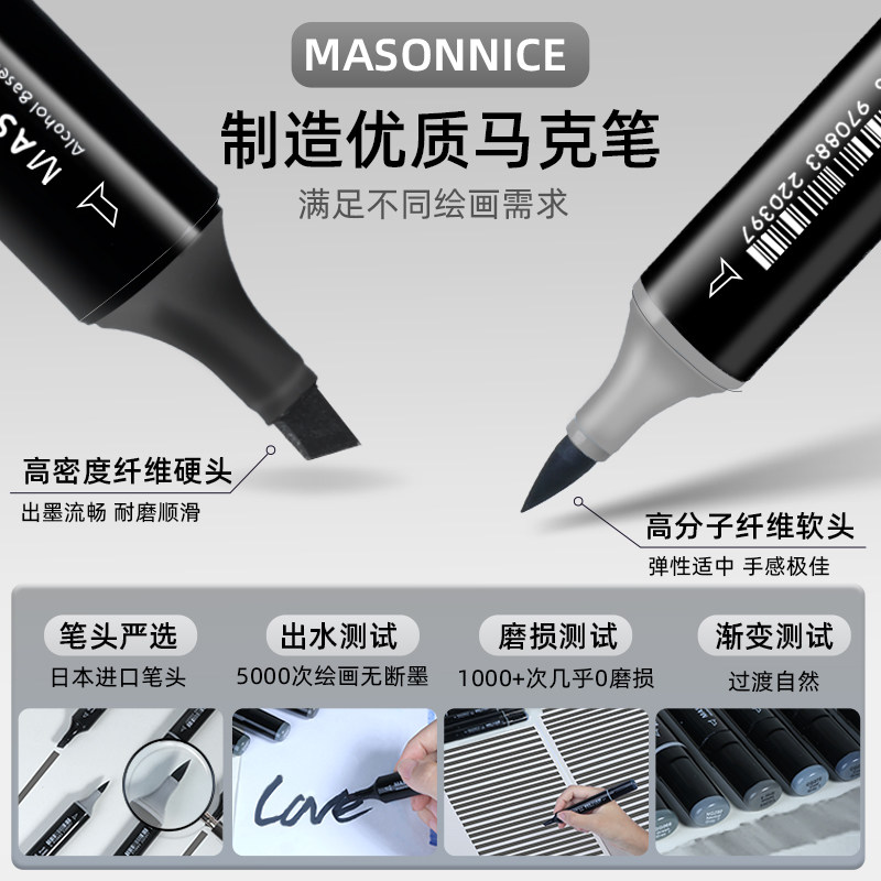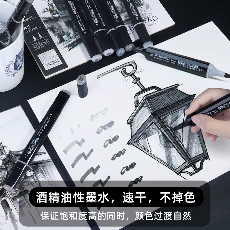 梅森尼斯马克笔灰色系套装灰色软头美术专用碳灰高级蓝灰ng暖灰cg冷灰速写素描工业建筑景观室内动漫设计画笔