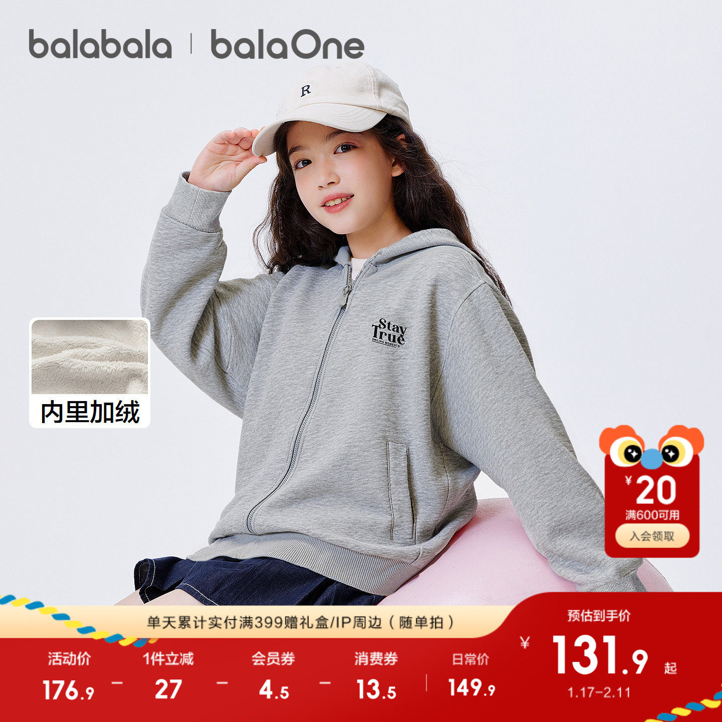 巴拉巴拉童装儿童外套女童男童加绒上衣新款2025秋冬装珊瑚绒保暖