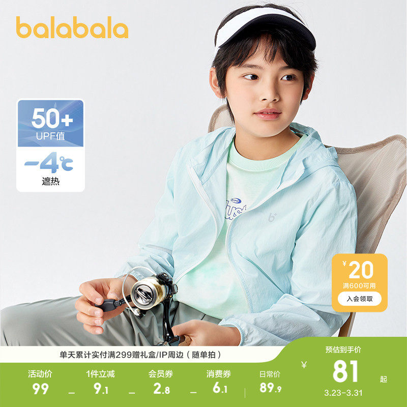 巴拉巴拉儿童防晒衣男童女童宝宝亲子装夏薄外套透气遮热UPF50+潮