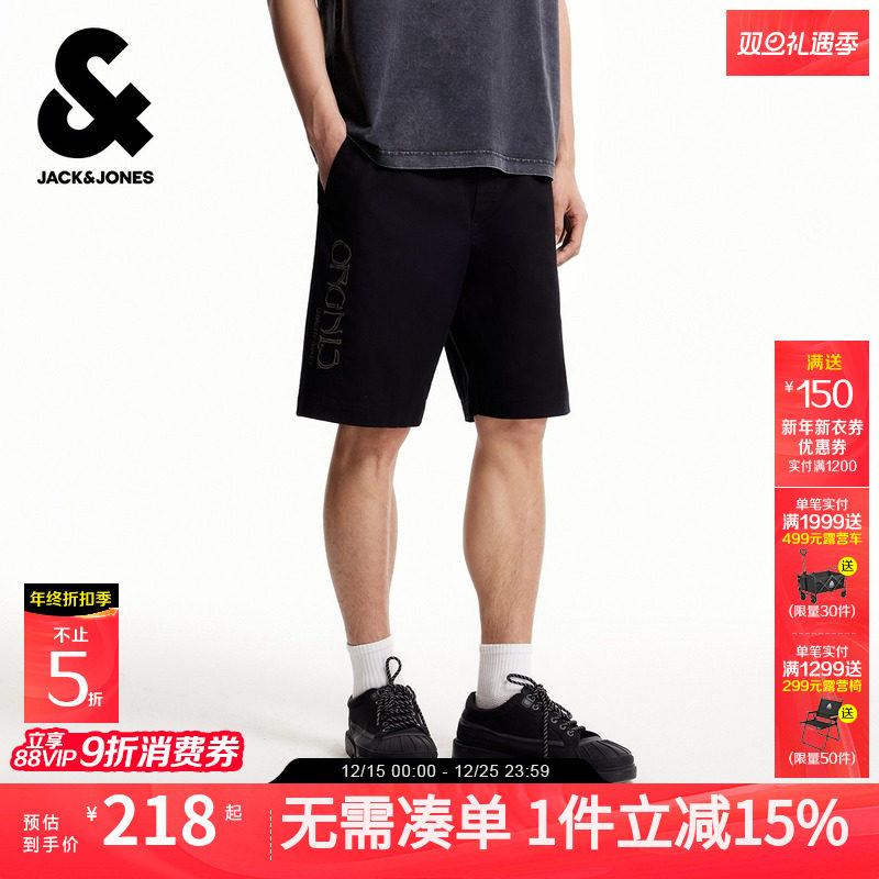 杰克琼斯男装秋季新款短裤时尚字母刺绣后兜贴布宽松休闲裤子下装