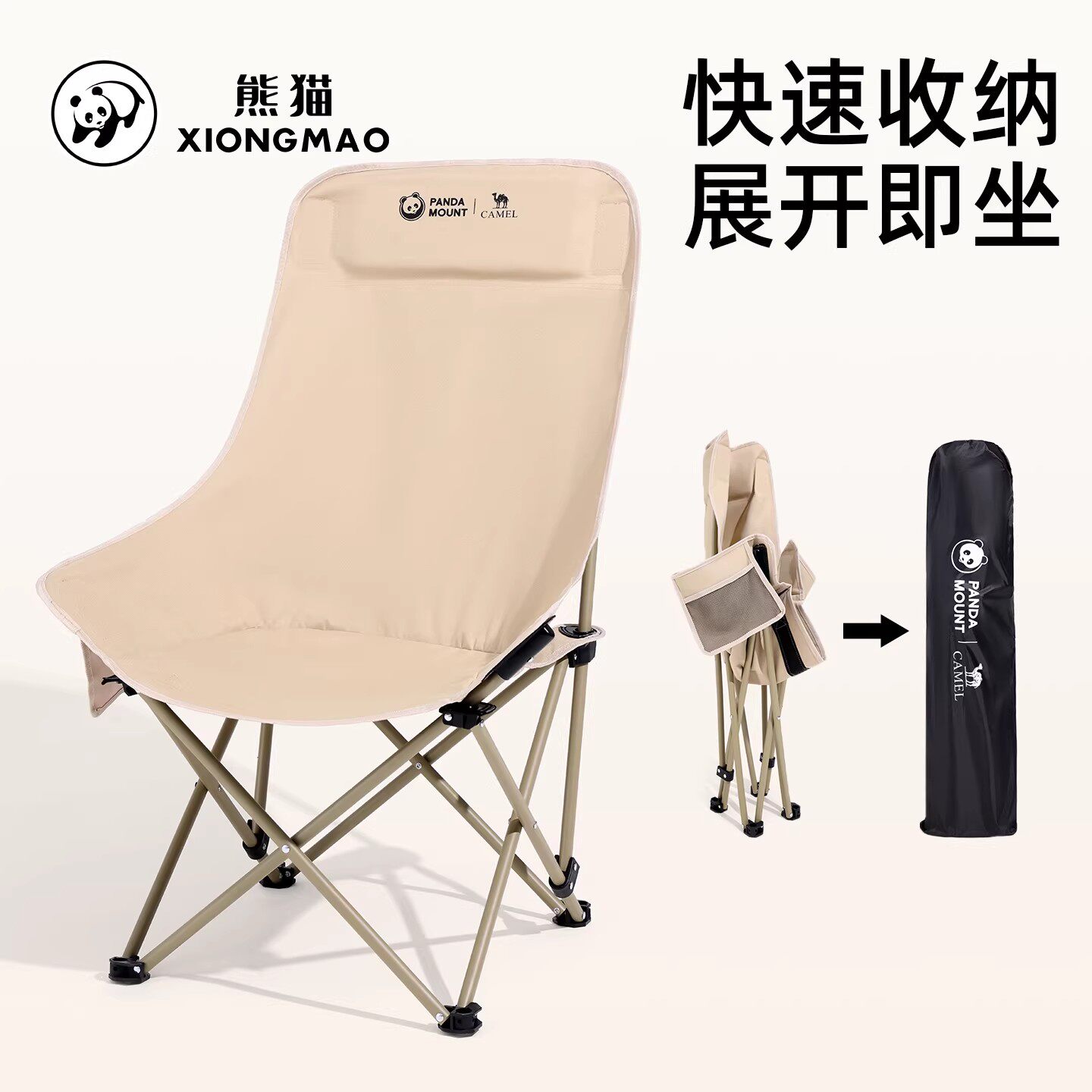 熊猫户外露营折叠椅野餐月亮椅写生便携凳子钓鱼椅耐磨高靠背椅子