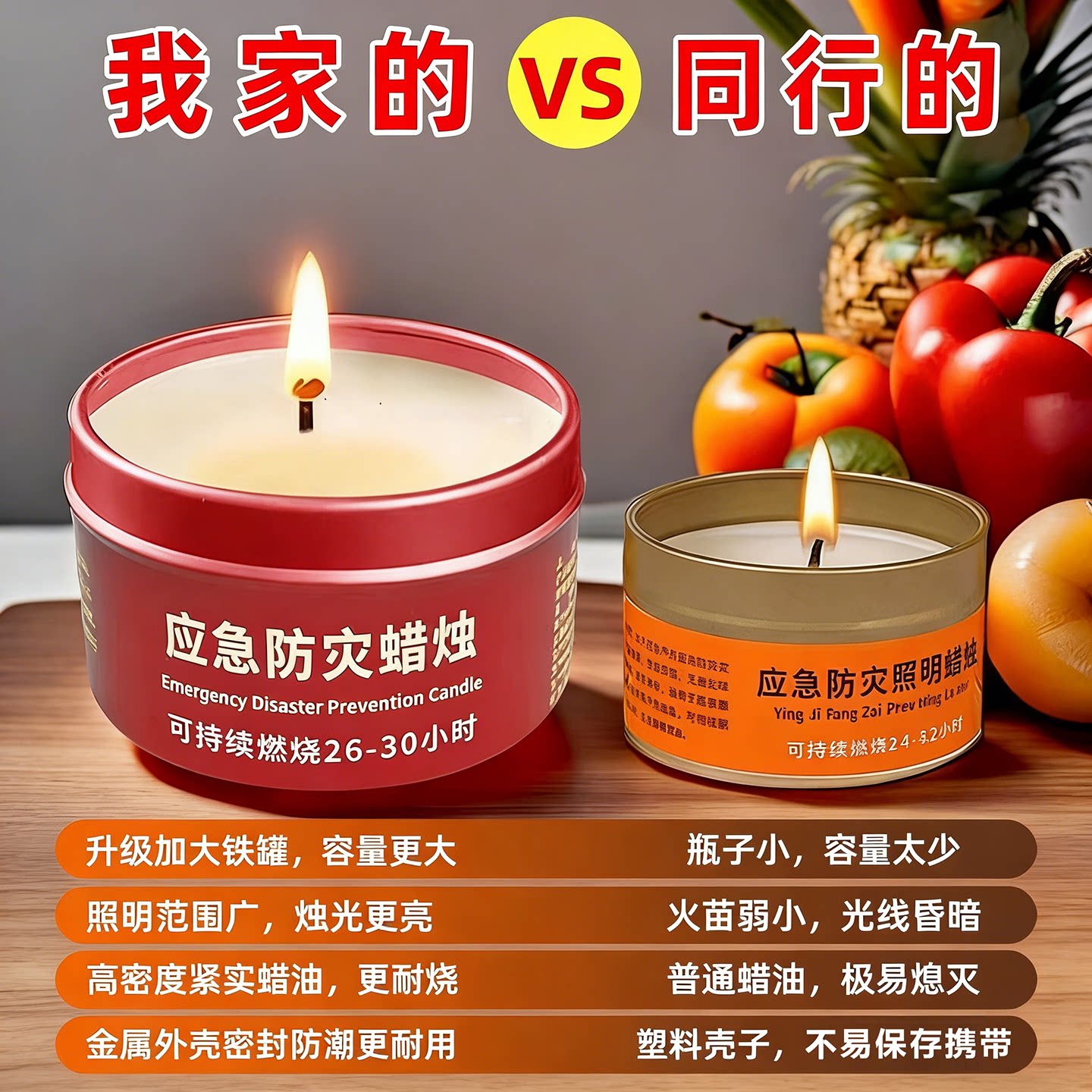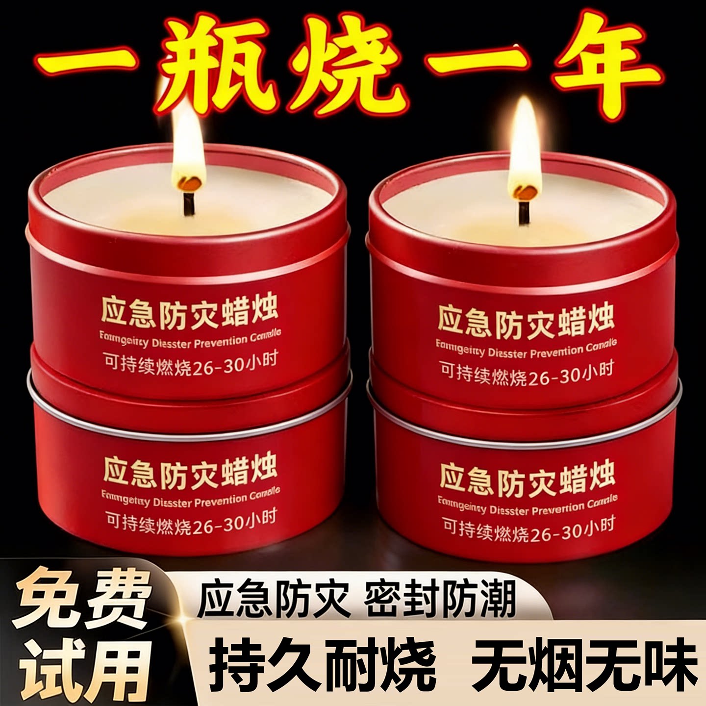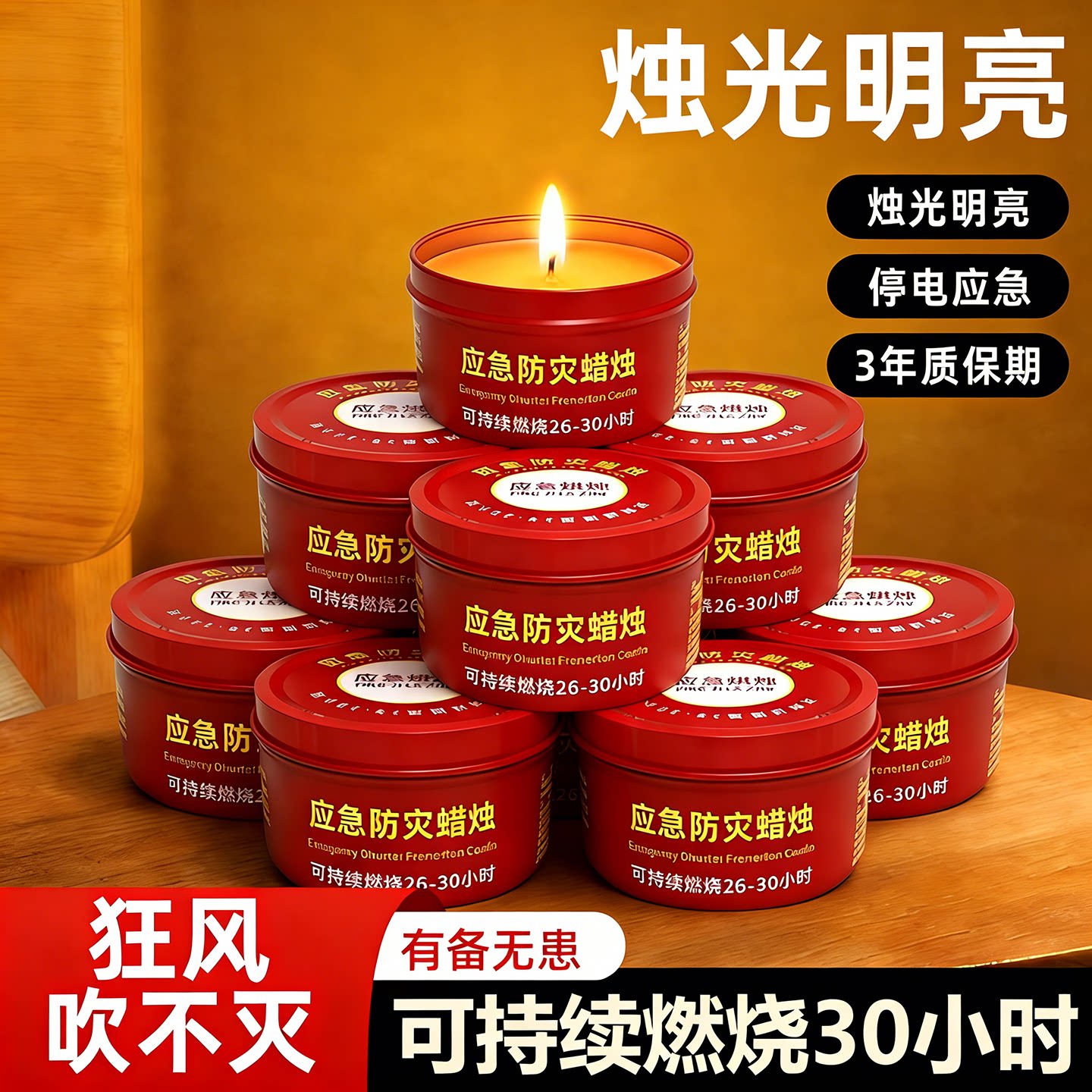 应急防灾蜡烛家用防风无烟无味大号煮茶烛台照明露营新款铁盒防水