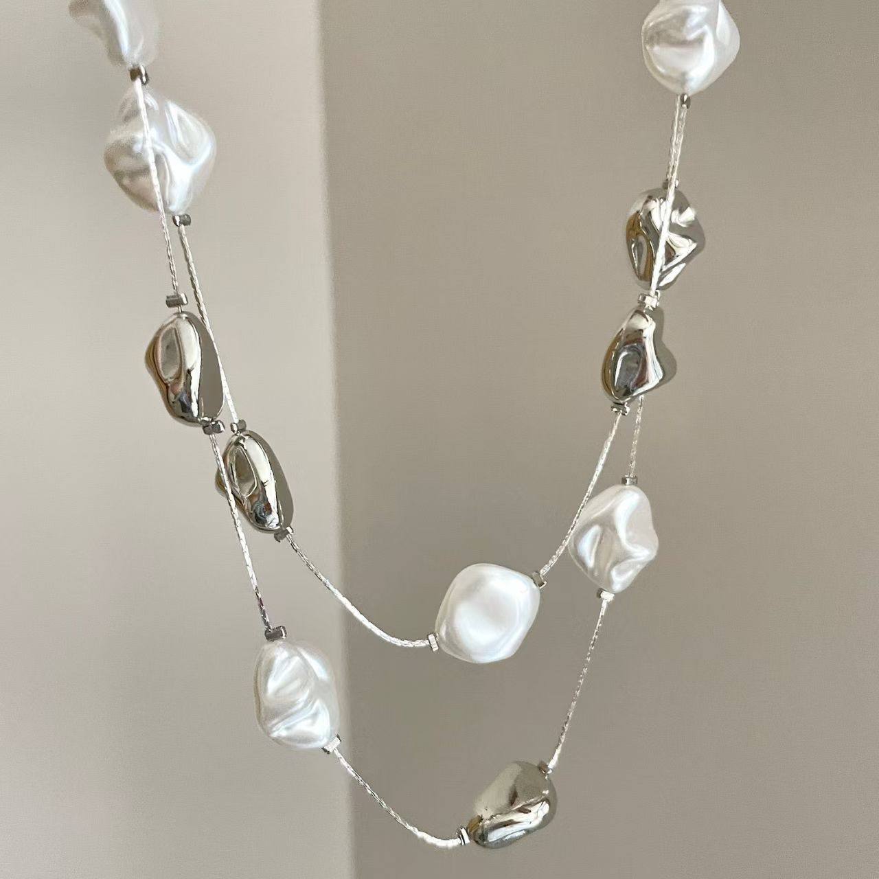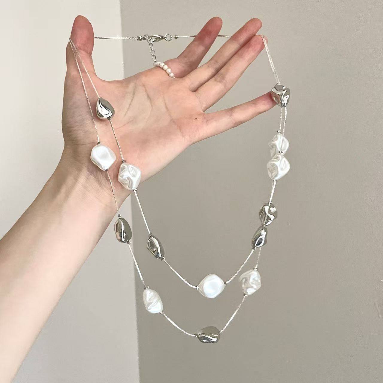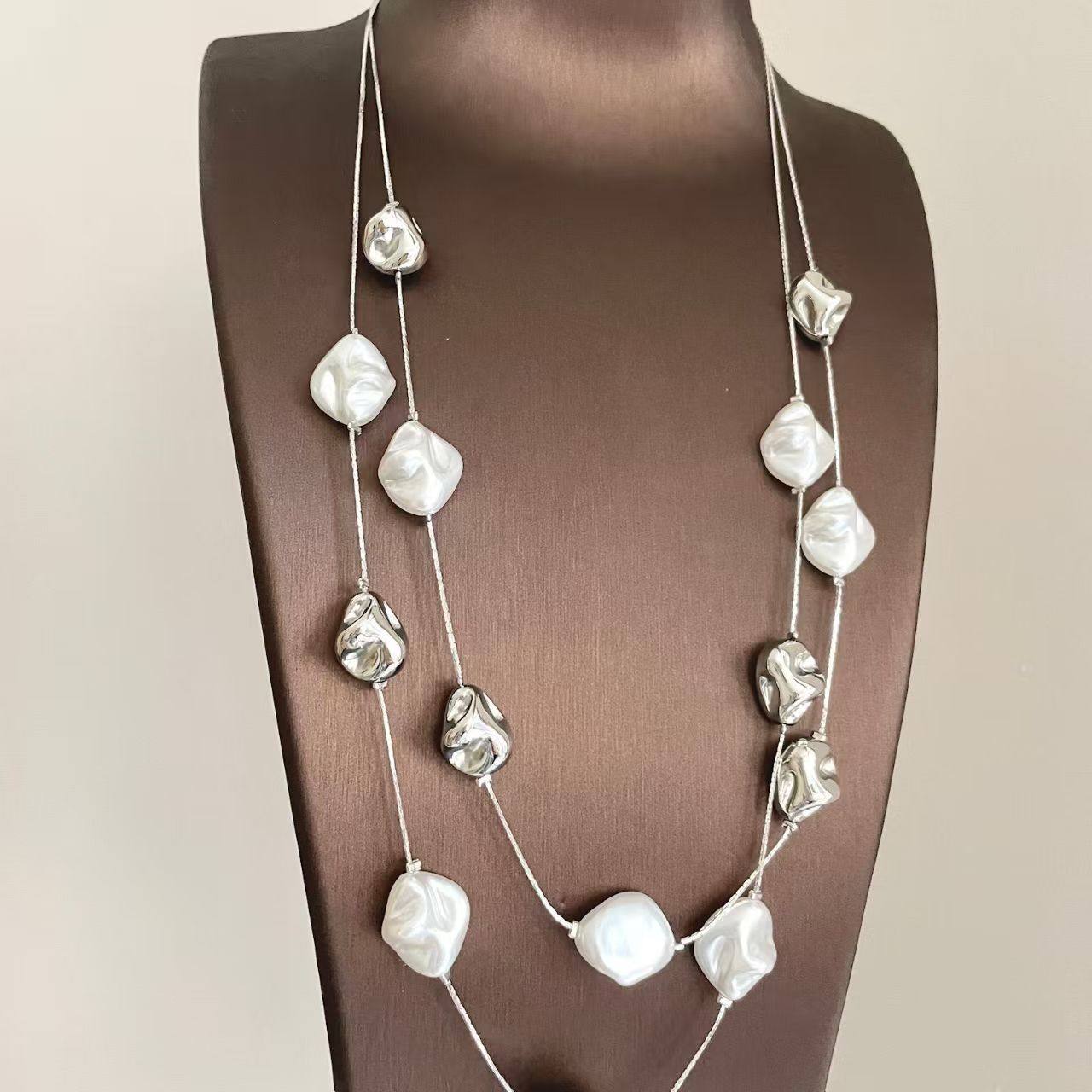 Vintage古着 不规则长款串珠项链女2025新款轻奢高级精致锁骨链