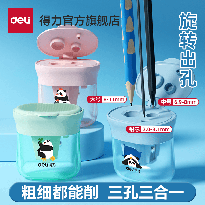 儿童卷笔刀小学生专用削笔刀大口径三孔粗三角洞洞铅笔转笔刀小学生幼儿园小型便携粗笔眉笔旋笔刀一年级