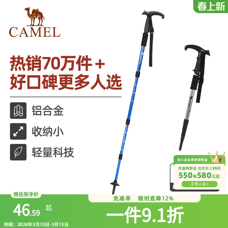 骆驼登山杖手杖碳素轻便伸缩折叠徒步爬山拐棍老人防滑碳纤维拐杖