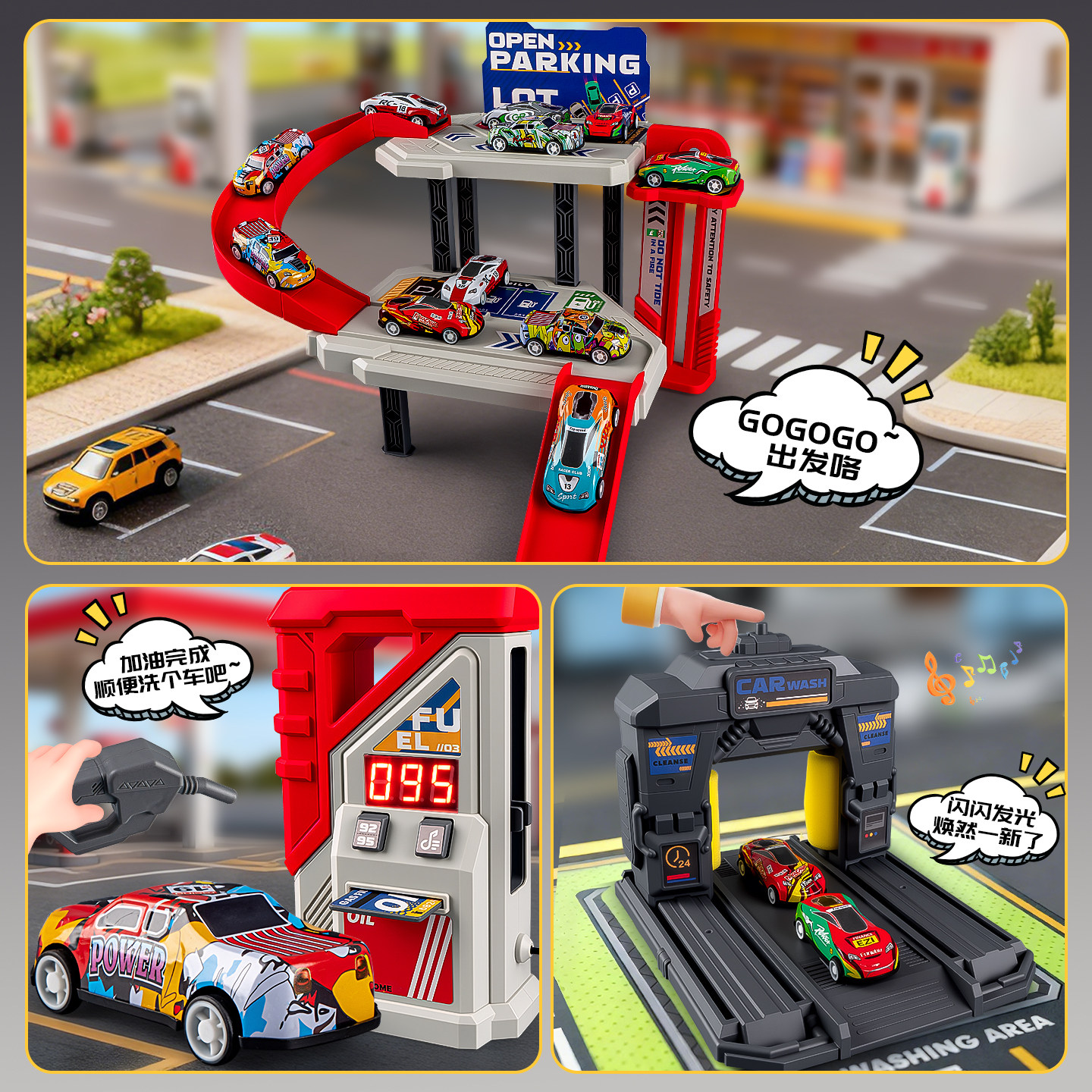加油站玩具儿童模型仿真小汽车男孩3岁6宝宝益智过家家玩具洗车机