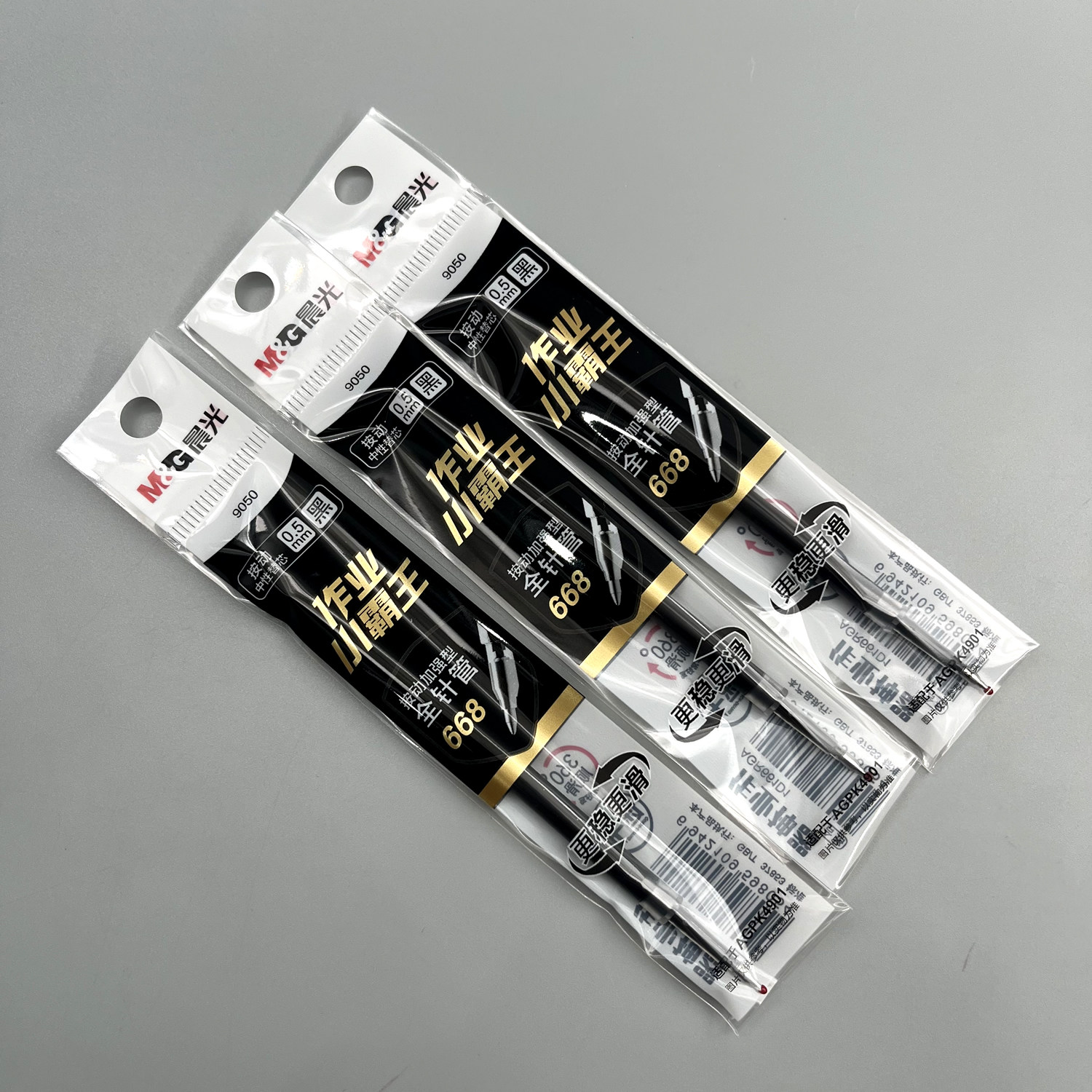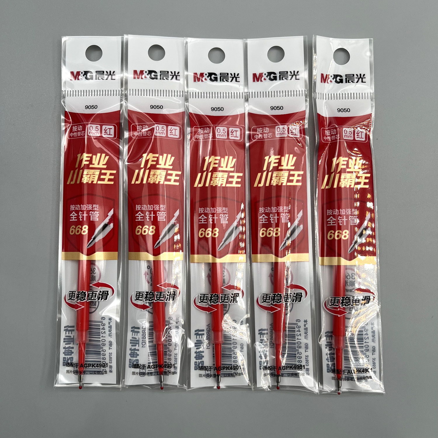 晨光作业小霸王按动中性替芯0.5mm黑色红色全针管更稳更滑适配于AGPK4901学生笔记刷题考试办公内芯笔芯9050