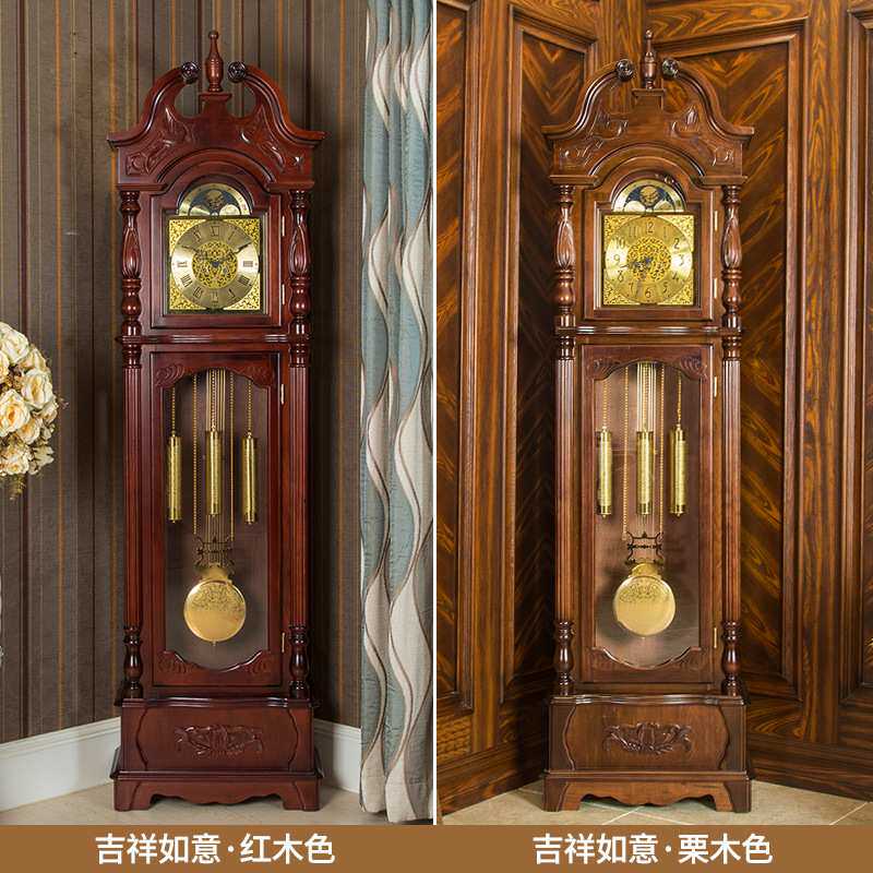 落地钟 实木立式摆钟复古简约欧式机械钟现代新中式客厅报时梦源