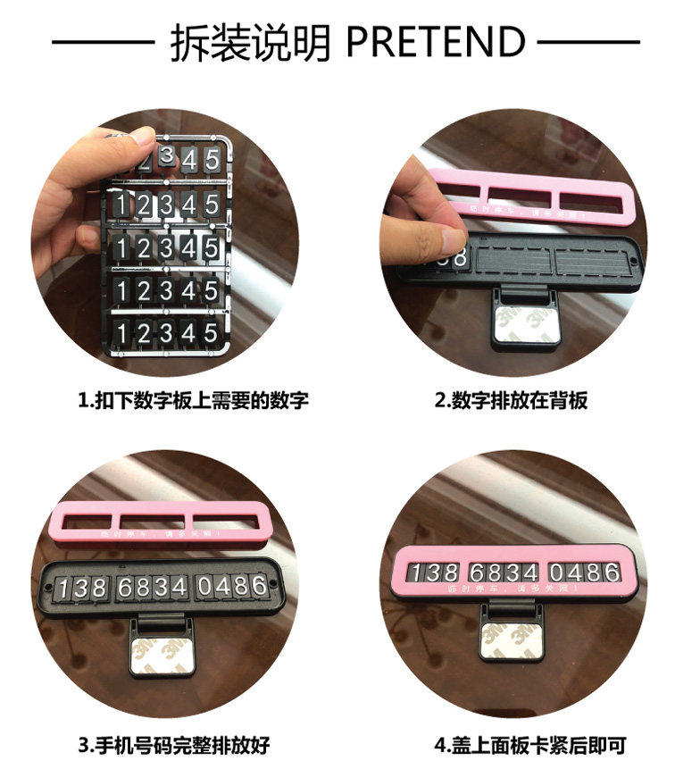 汽车临时停车牌挪车电话号码车载移车号牌车内装饰用品创意牌车用简约时尚可隐藏号码牌
