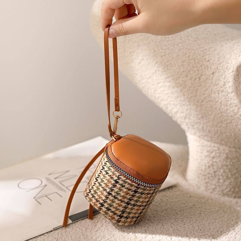 软皮手拿包迷你精致零钱包水桶口红包化妆包小手拎小包收纳硬币