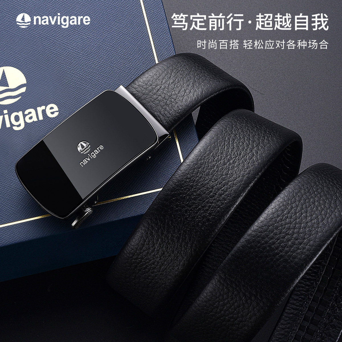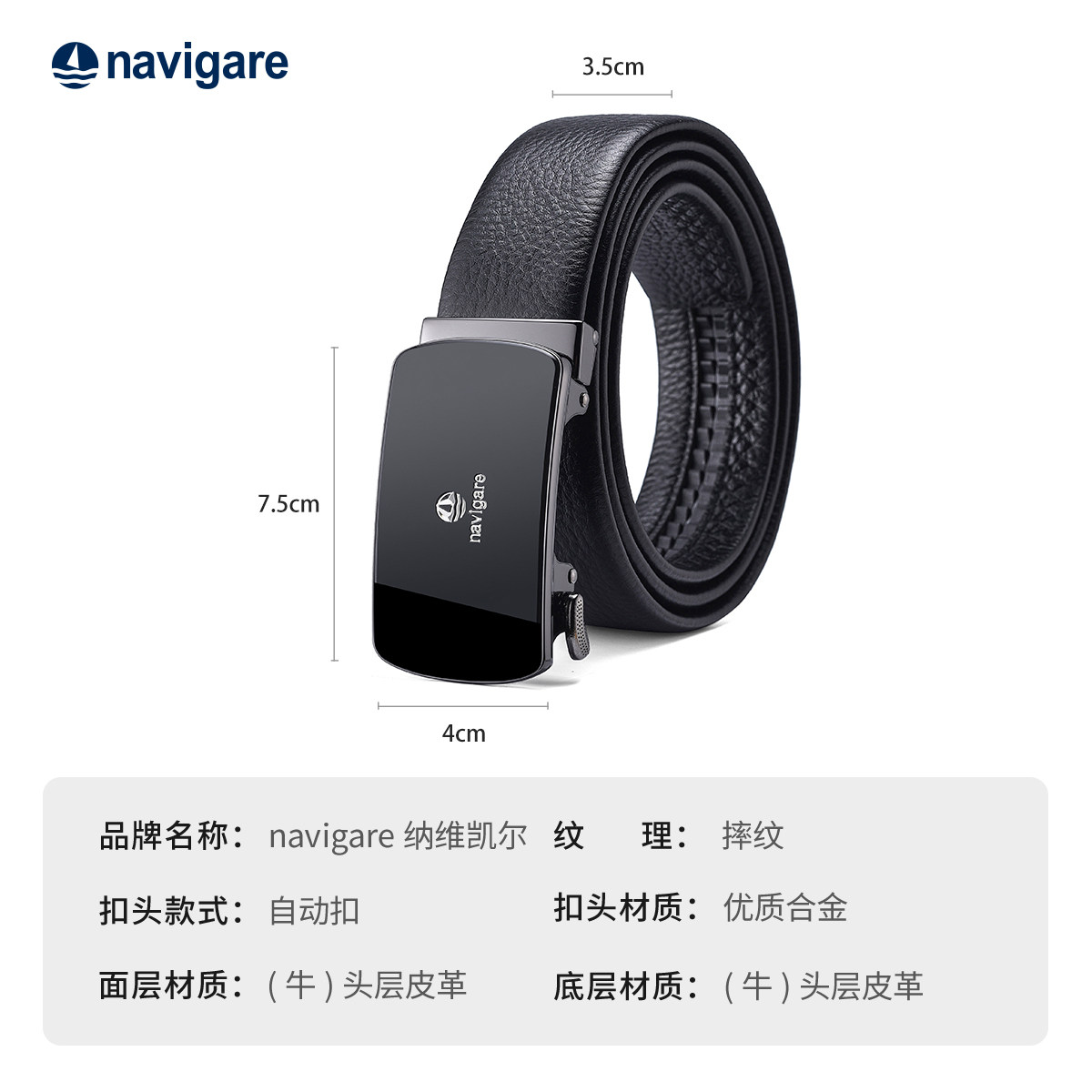 Navigare纳维凯尔意大利小帆船男真皮腰带自动扣男士头层牛皮皮带