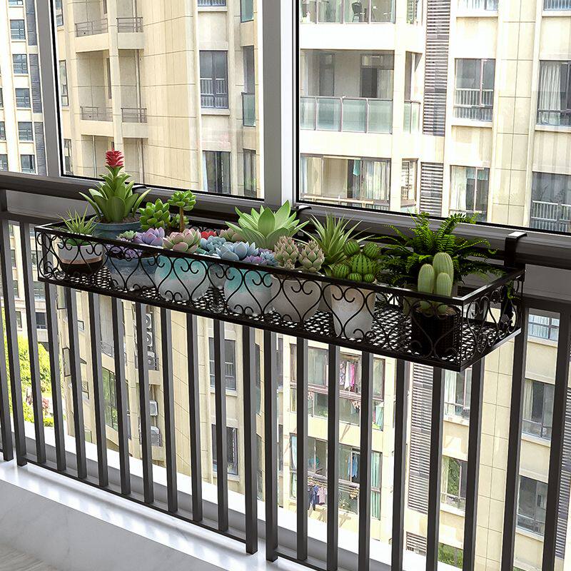 阳台养花架置物架悬挂栏杆挂架挂式花盆架护栏铁艺多肉花架子玻璃