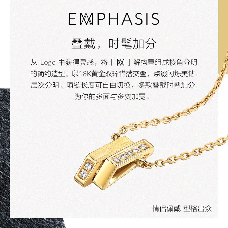 周生生集团旗下品牌EMPHASIS冠系列18K黄金钻石项链90613N