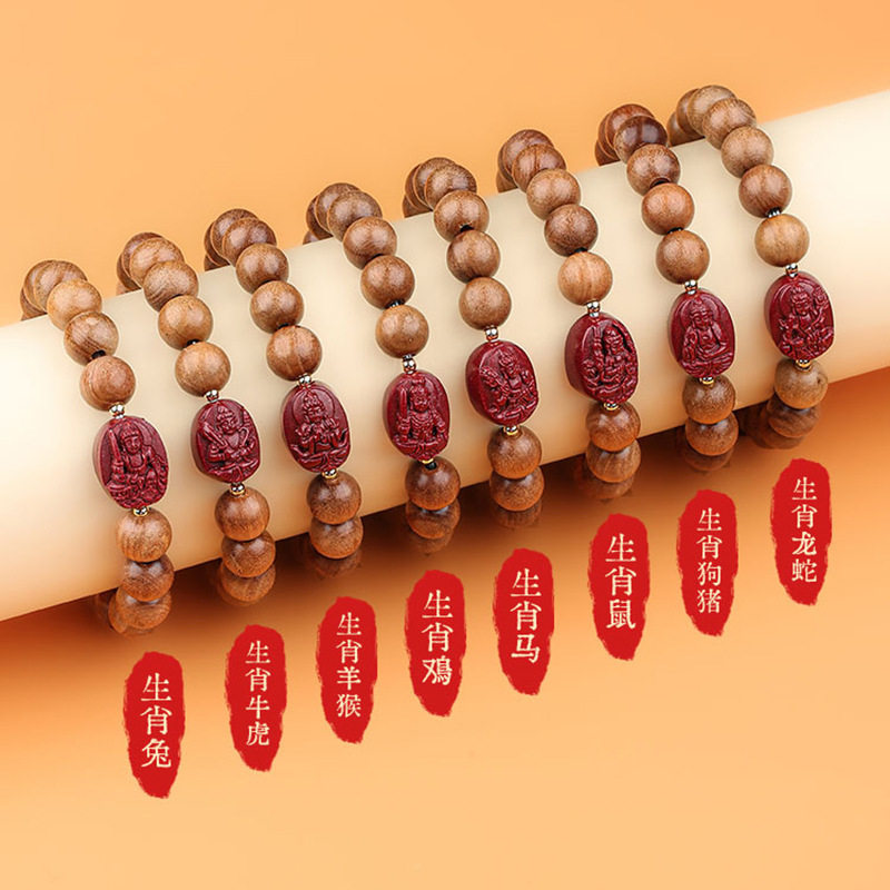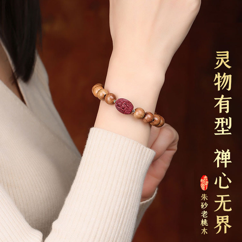 新款天然老桃木手串朱砂手链情侣男女款十二生肖本命佛佛珠佩戴