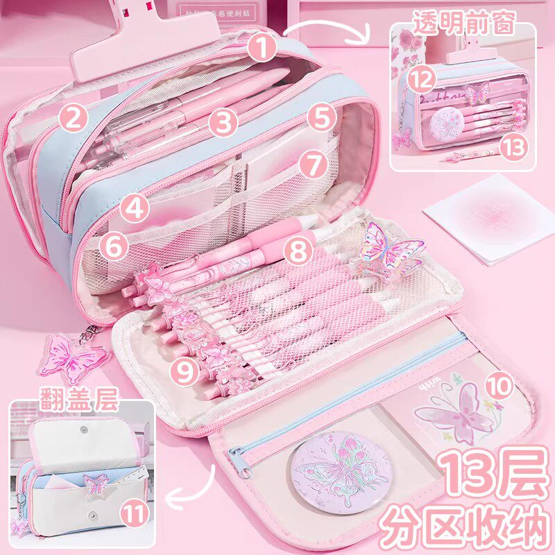 13层铃兰蝴蝶2026新款大容量笔袋