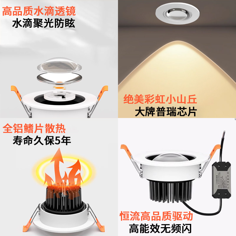 射灯LED天花灯小山丘嵌入式超亮家用COB筒灯7W可调商用聚光孔灯