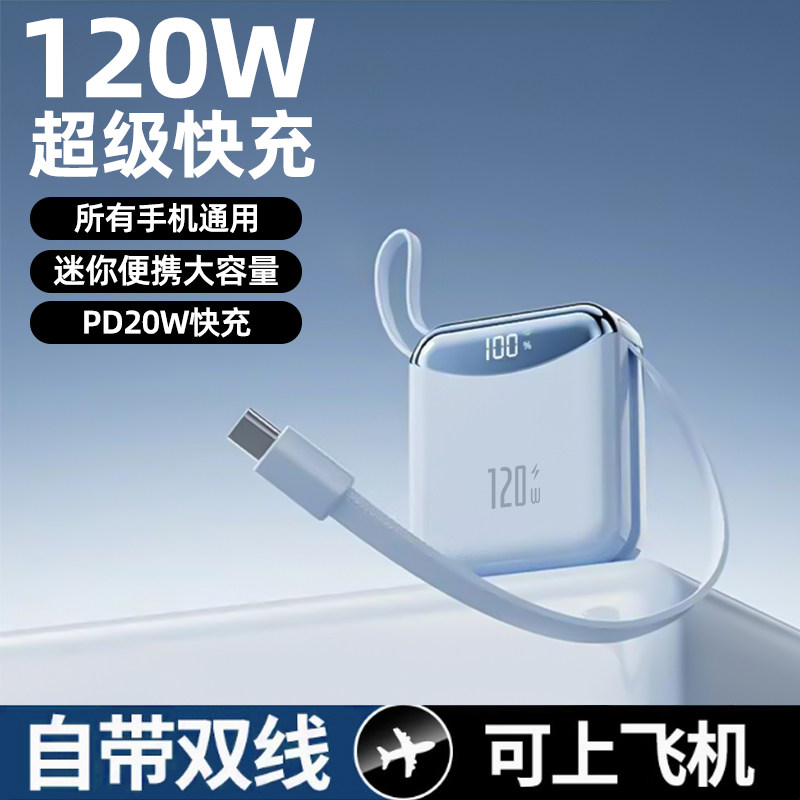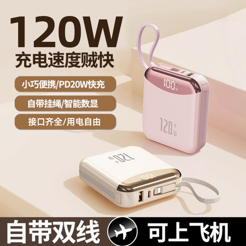 【新国标3C认证】2025新款超级快充充电宝自带线20000毫安迷你小巧大容量移动电源适用华为苹果专用可上飞机