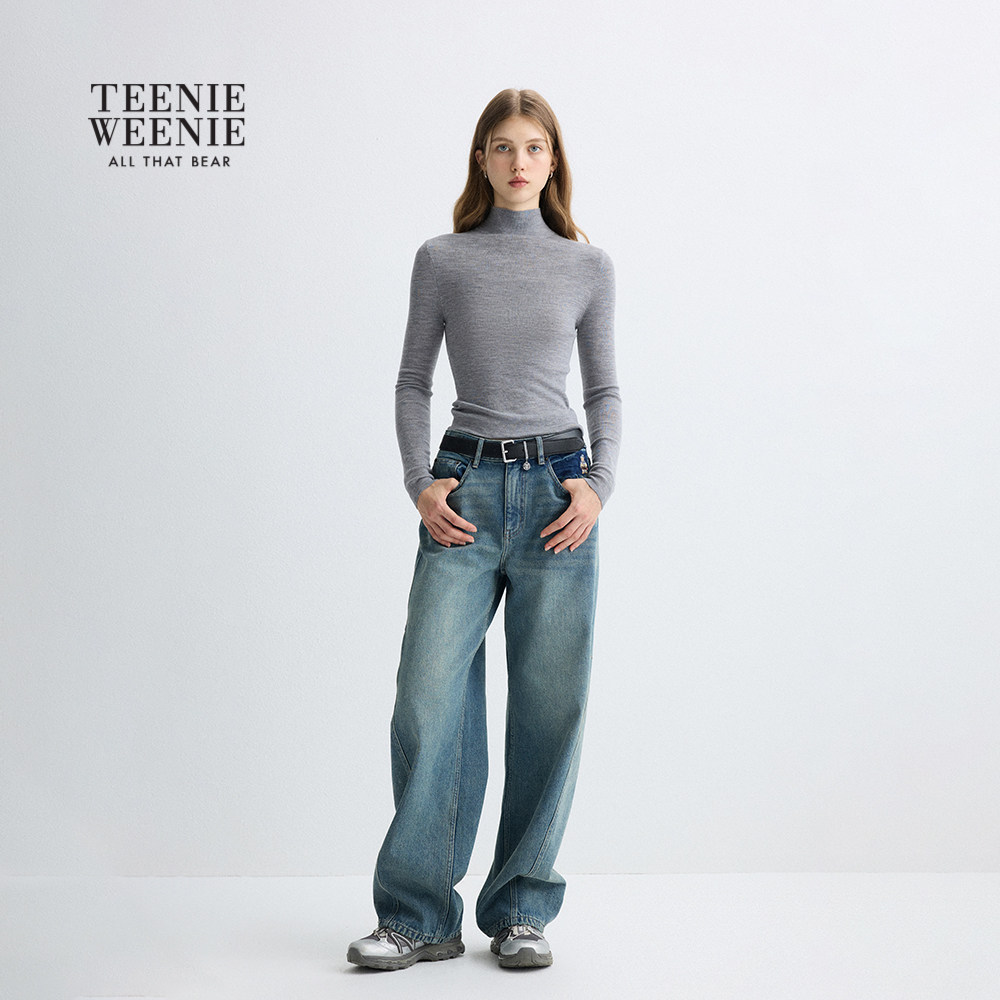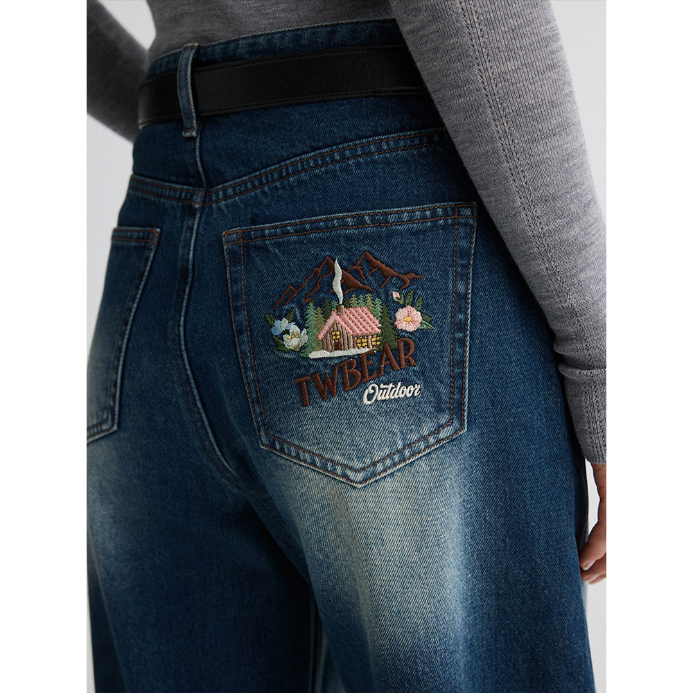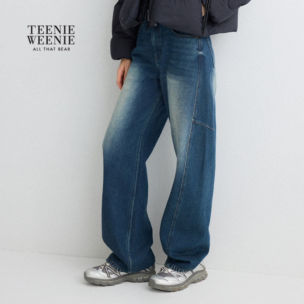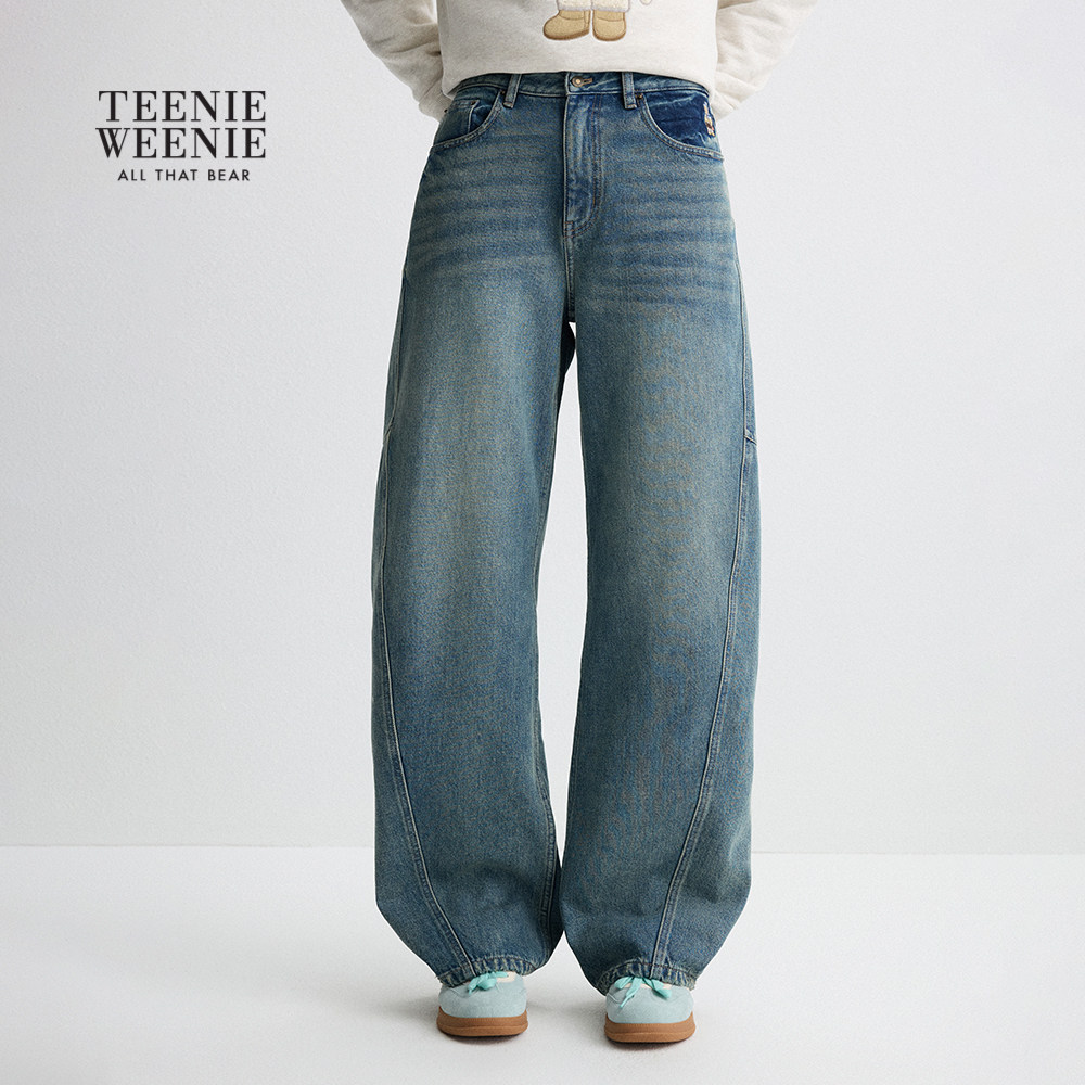 TeenieWeenie小熊女装牛仔裤2025年冬季新款潮流时髦舒适刺绣长裤