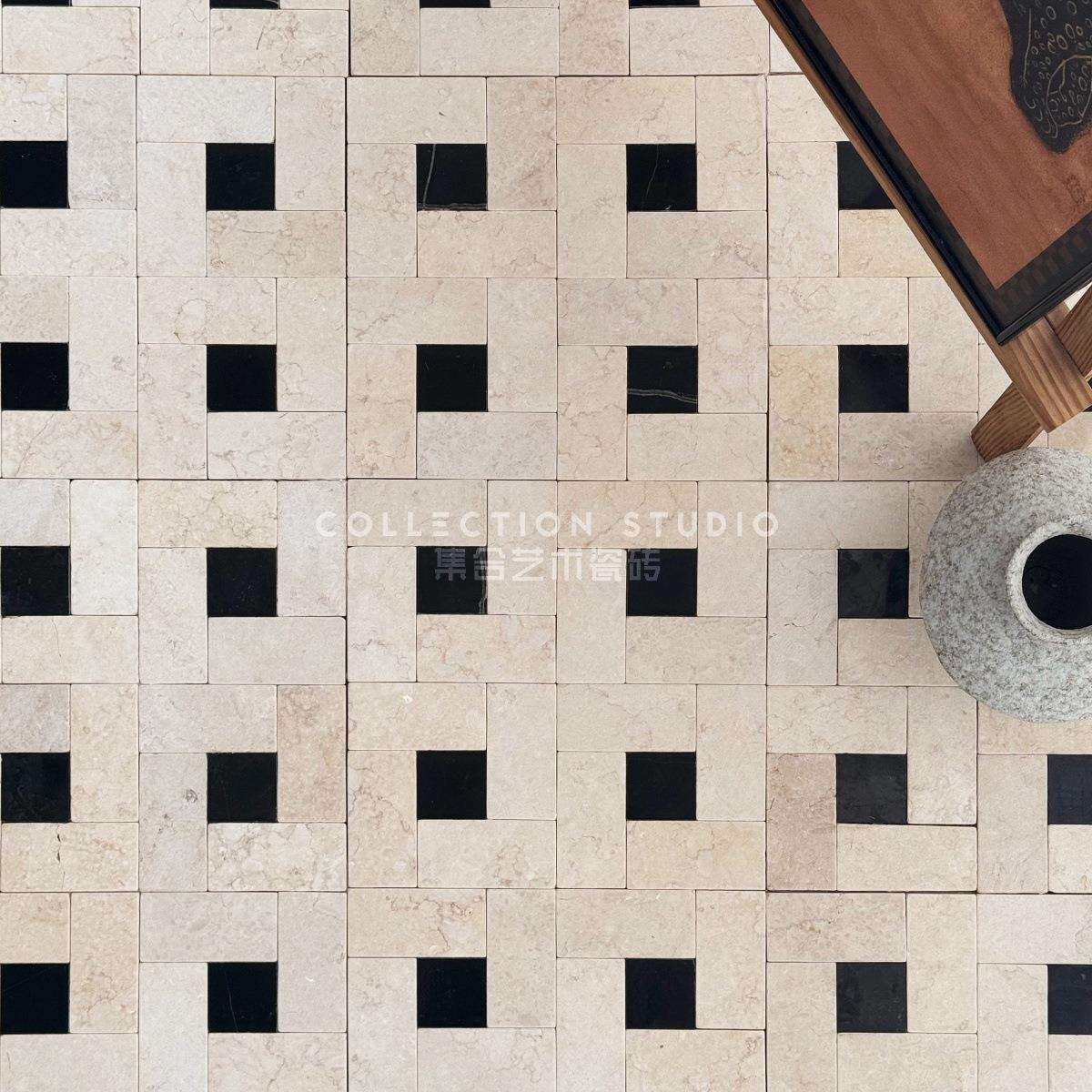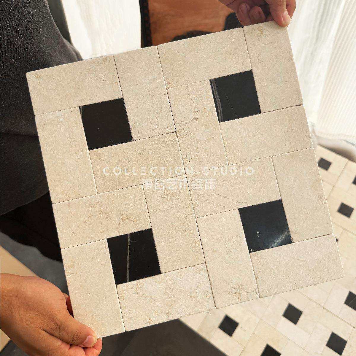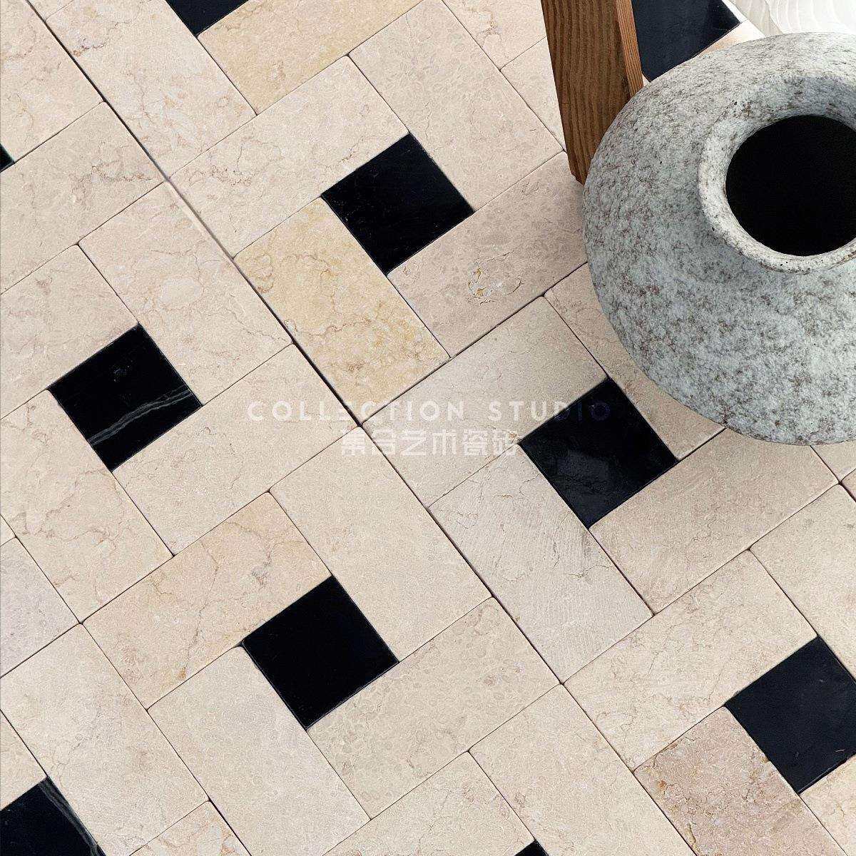 米黄天然莱姆石石材回字拼马赛克别墅民宿服装店咖啡店墙砖地砖