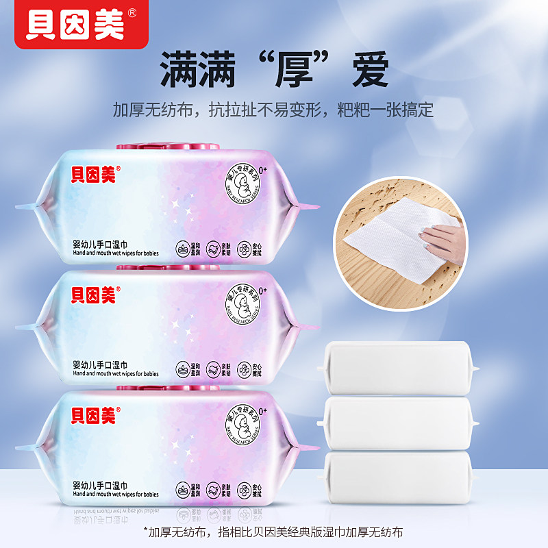 贝因美湿巾纸家庭囤货实惠装婴幼儿宝宝手口专用湿纸巾不刺激清洁