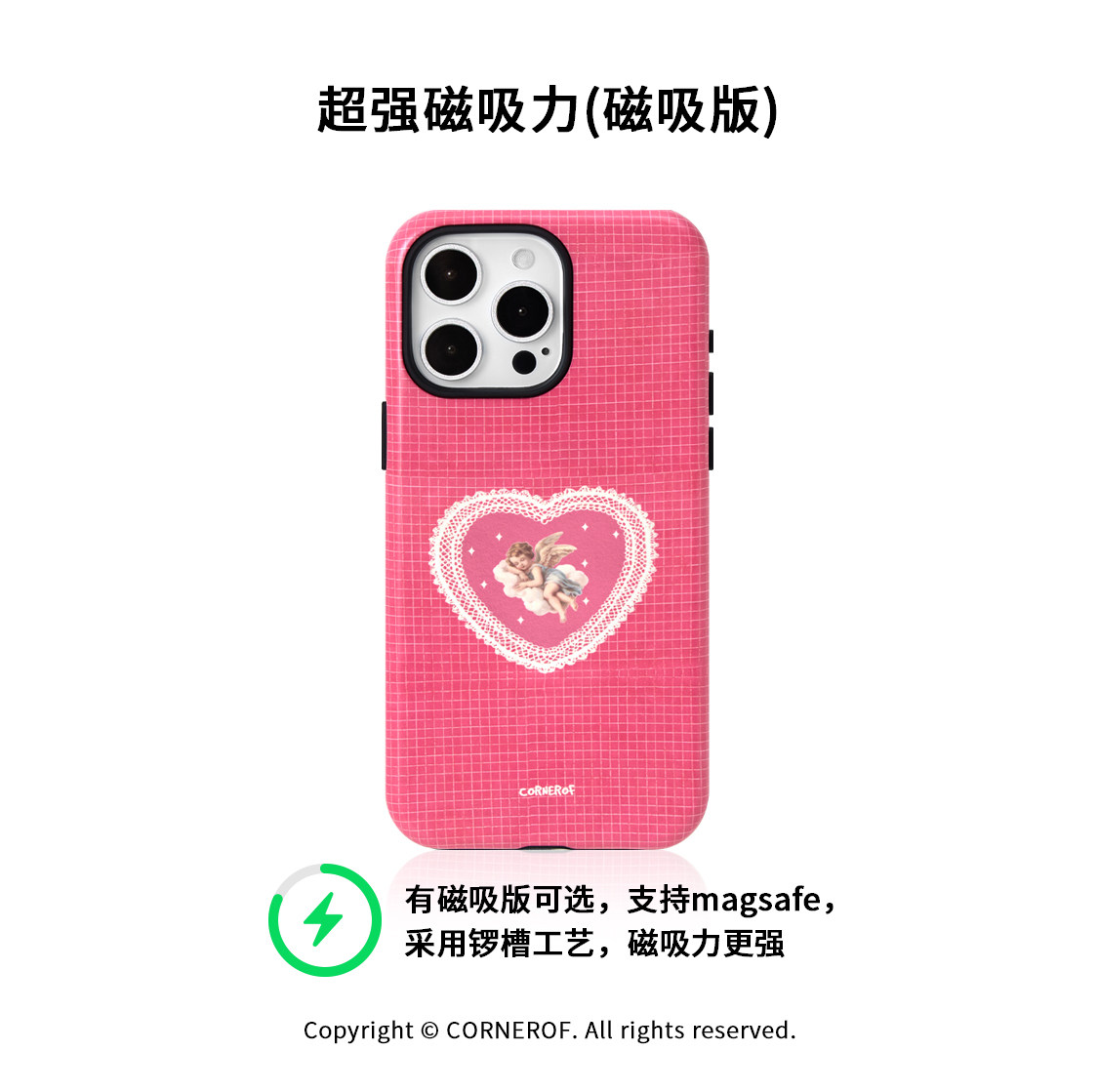 cornerof原创磁吸适用iPhone15promax手机壳14pro苹果13蕾丝天使12全包11二合一菲林xsmaxr格纹新款高级