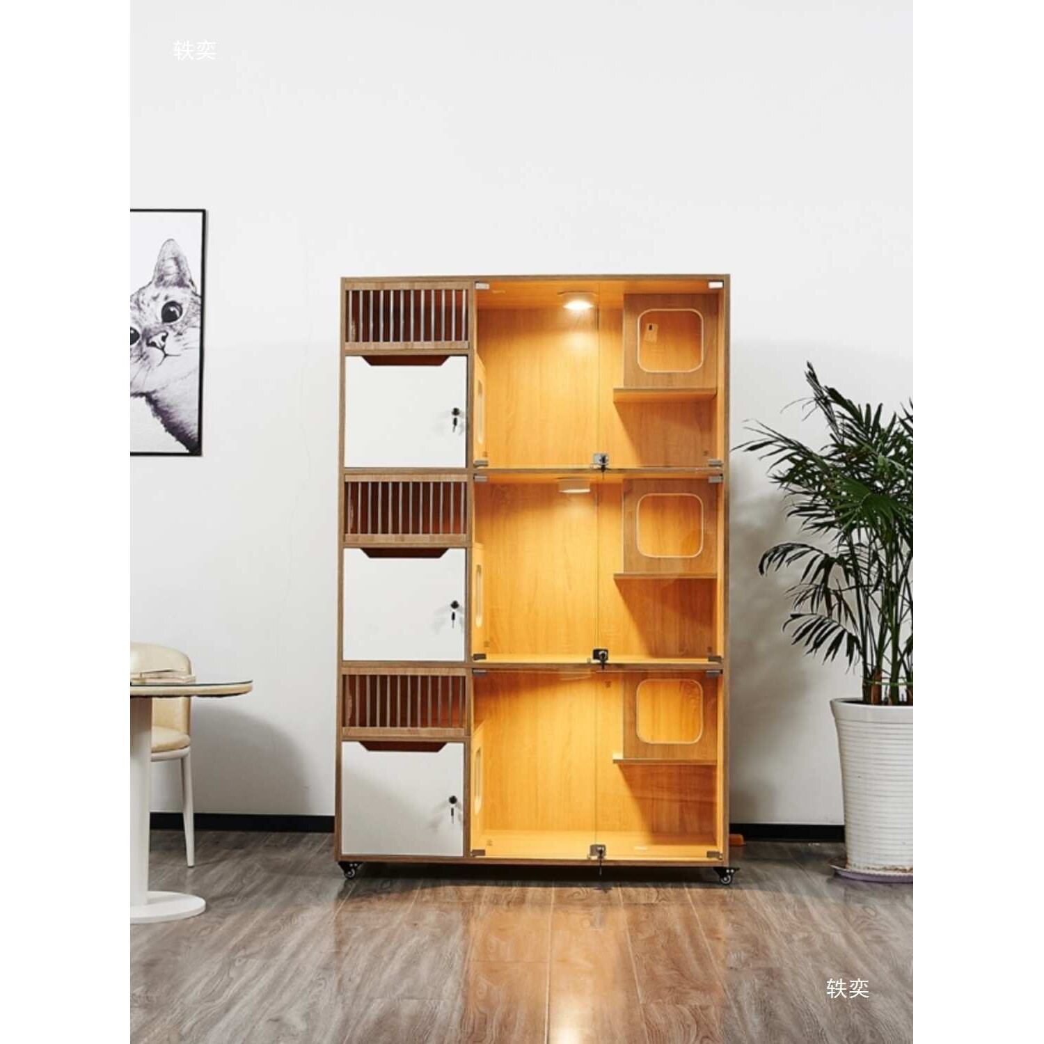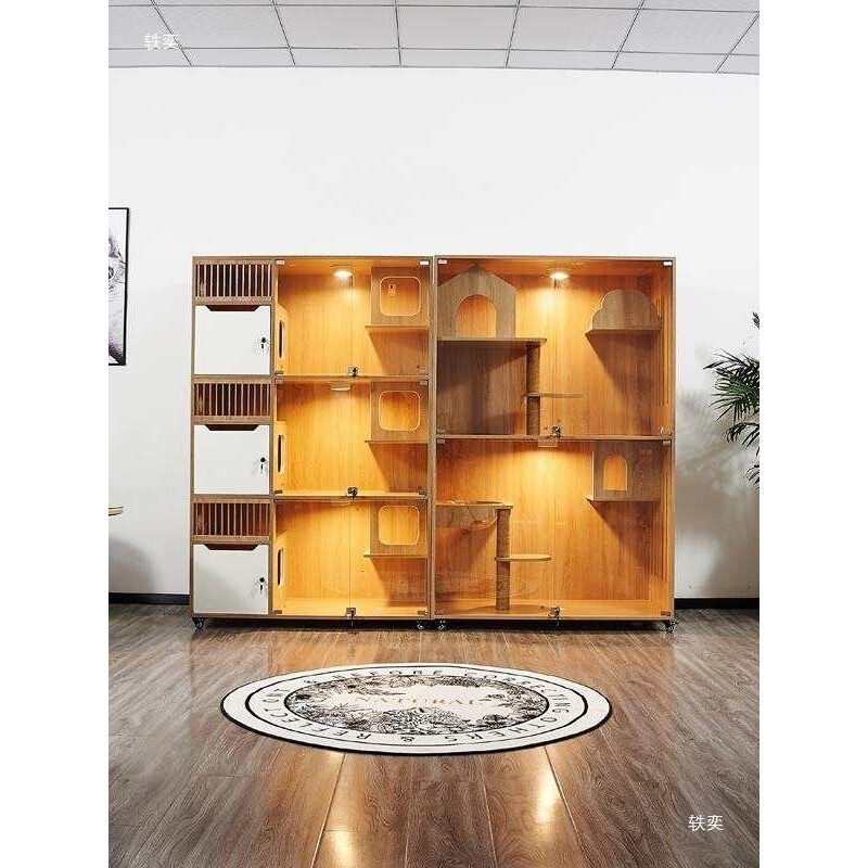 猫别墅实木猫笼宠物店玻璃猫咪繁育柜展示寄养柜猫舍猫柜猫咖