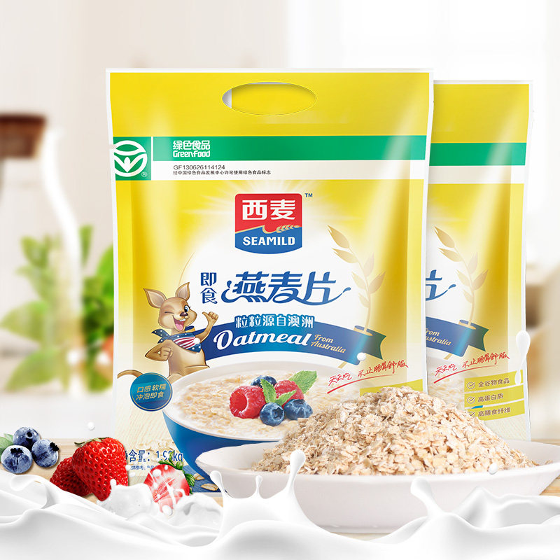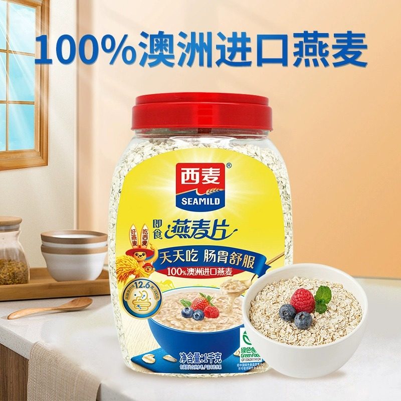 西麦2斤袋装纯燕麦片谷物0添加蔗糖懒人即食速食膳食纤维早餐饱腹