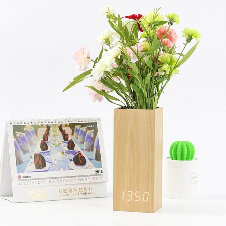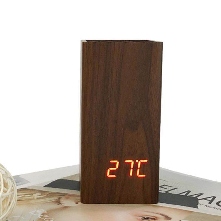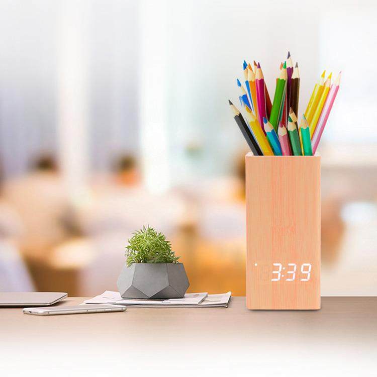创意木质笔筒闹钟 卧室数字静音led电子时钟 新款迷你led台钟座钟
