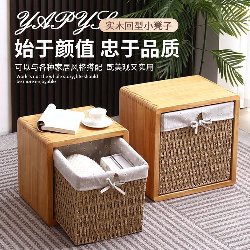 d日式换鞋凳新款回型凳子实木榫卯矮凳客厅储物边几轻奢床头收纳