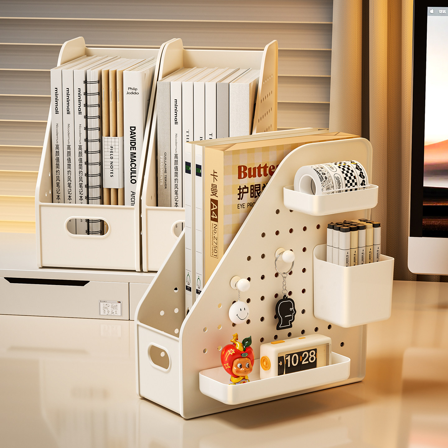 洞洞板桌面书立架学生书本置物架大容量办公室工位整理文件收纳盒