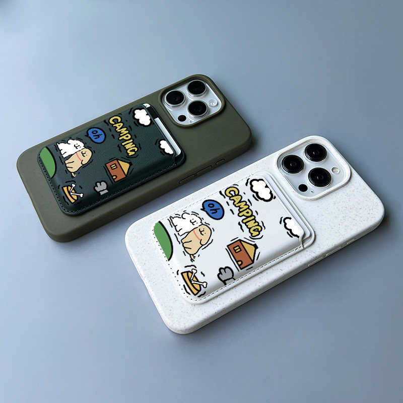 露营小狗magsafe磁吸卡包适用苹果2024新款iphone13promax手机壳14plus同款15pro真皮卡套式mini皮质配件门禁