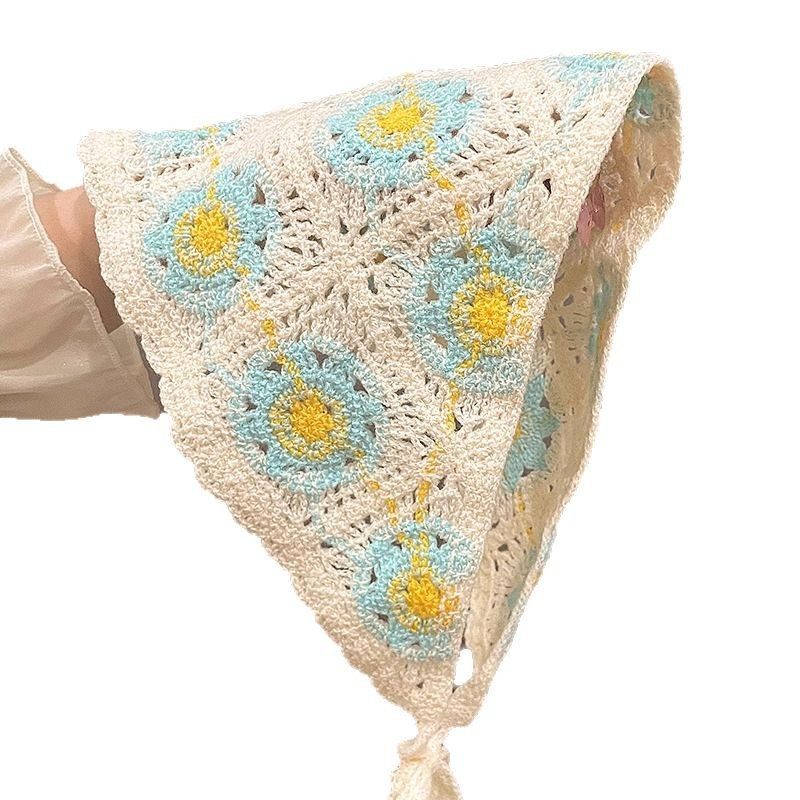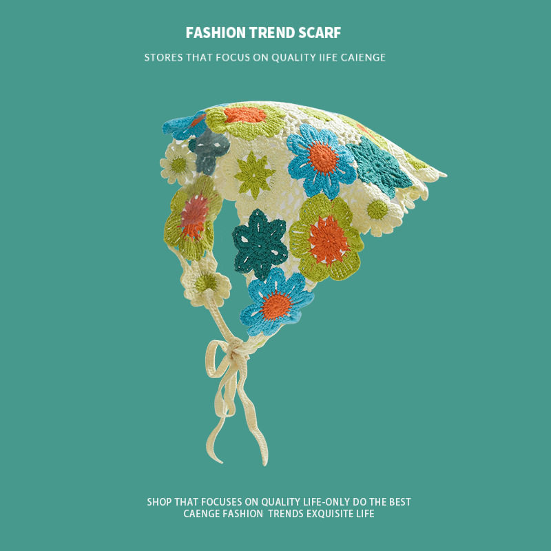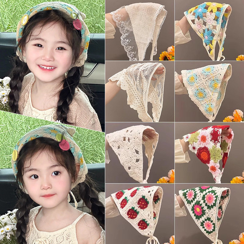 法式复古蕾丝花朵发带女夏季甜美可爱三角头巾飘带绑发田园风头饰