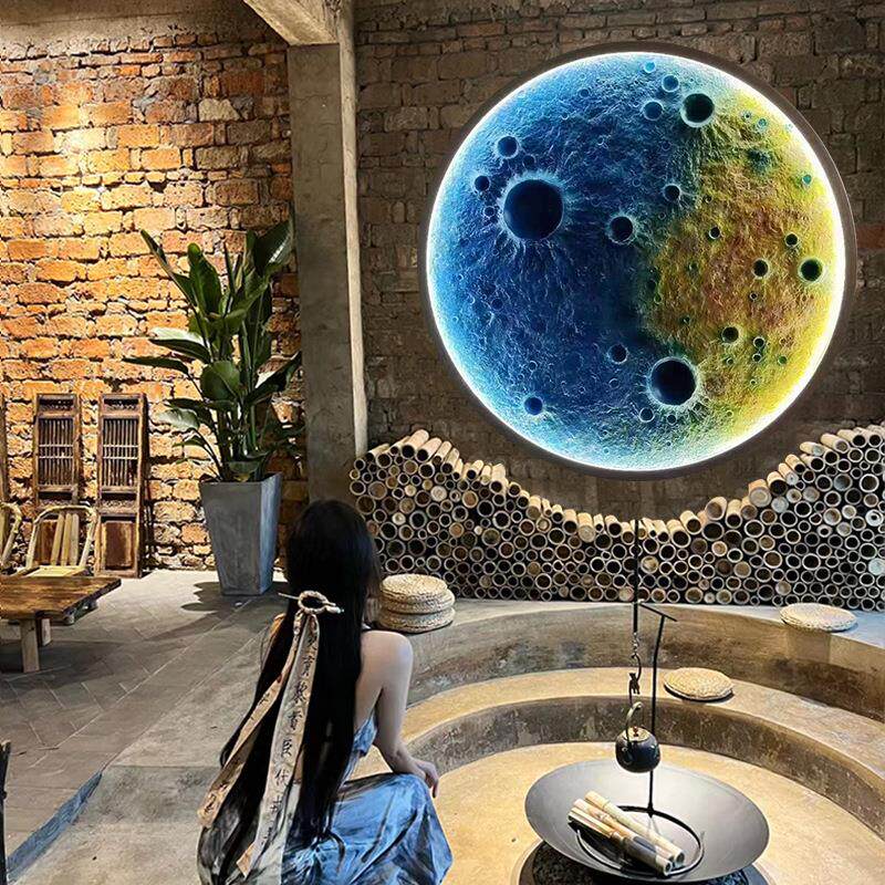 月球浮雕灯设计师壁灯3D立体月亮灯背景墙圆形酒吧壁挂壁画网红灯