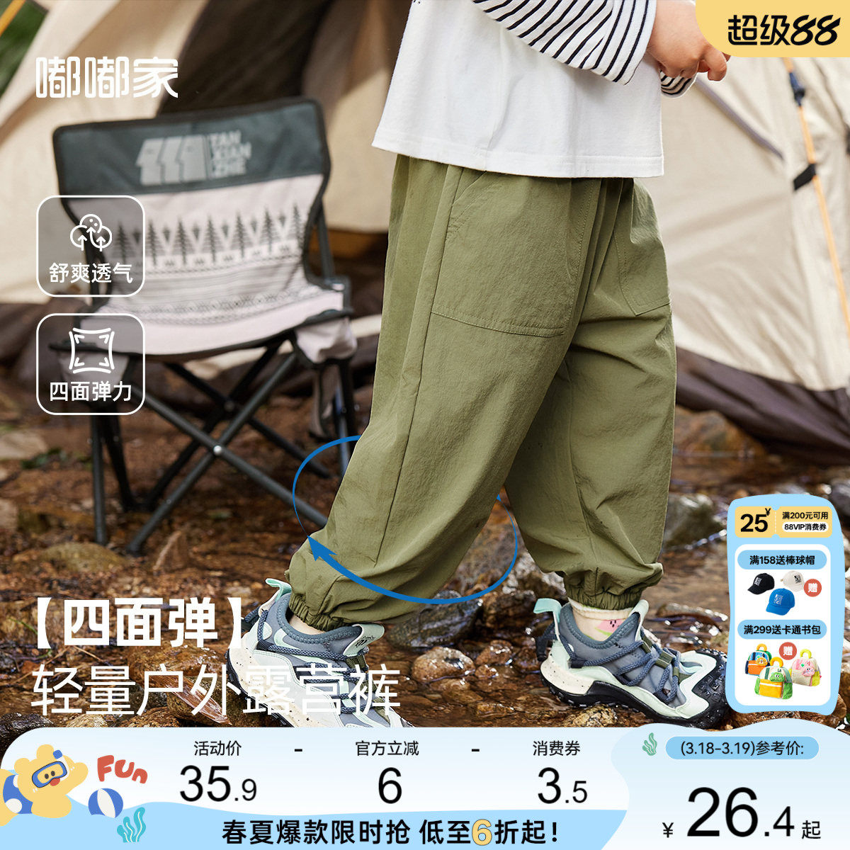 【四面弹】嘟嘟家男童裤子春夏轻薄宝宝长裤夏季儿童休闲裤运动裤