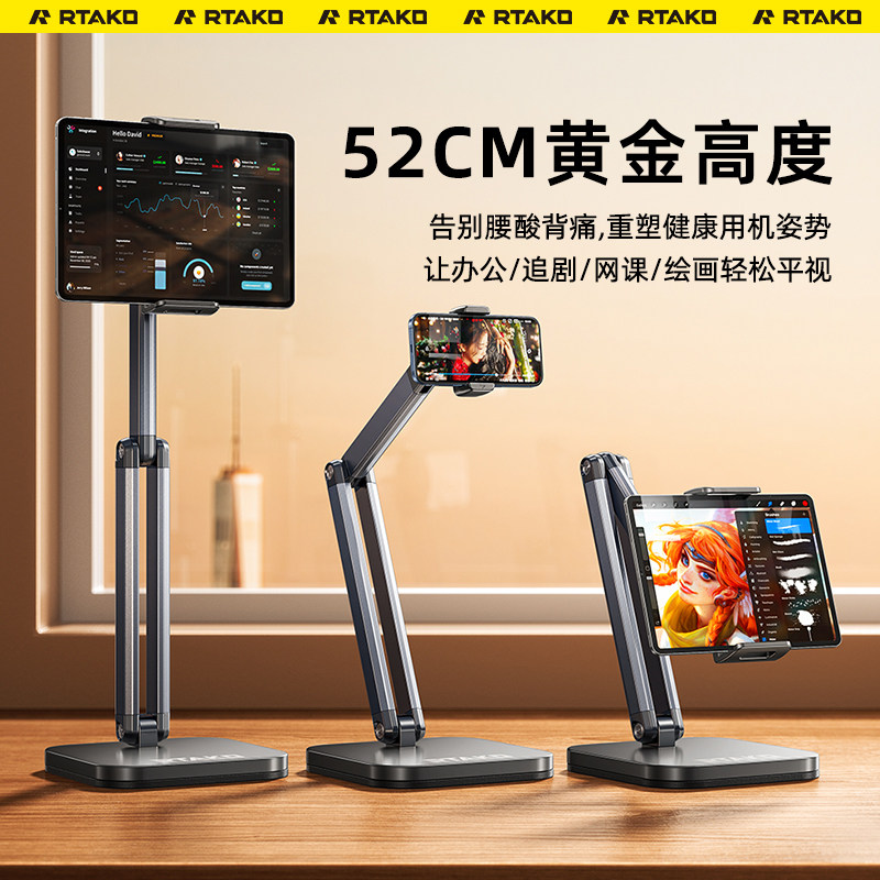 锐塔克平板支架适用于ipad支撑架电脑桌面pad架子2024新款通用手机架便捷屏学习机升降折叠网课专用直播扩展