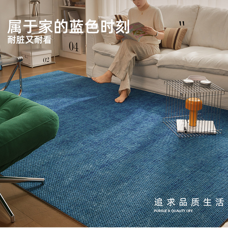 多巴胺蓝色进口羊毛地毯客厅普鲁士海蓝色客厅卧室茶几垫2026新款