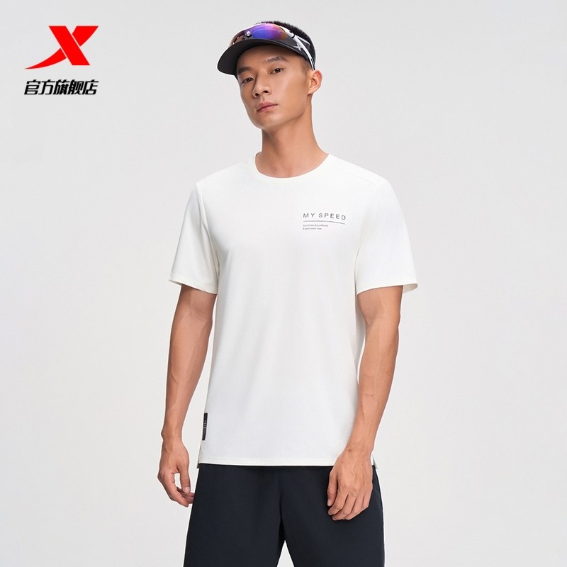 特步速干T男夏季宽松短袖冰丝户外跑步T恤透气上衣男士健身运动服