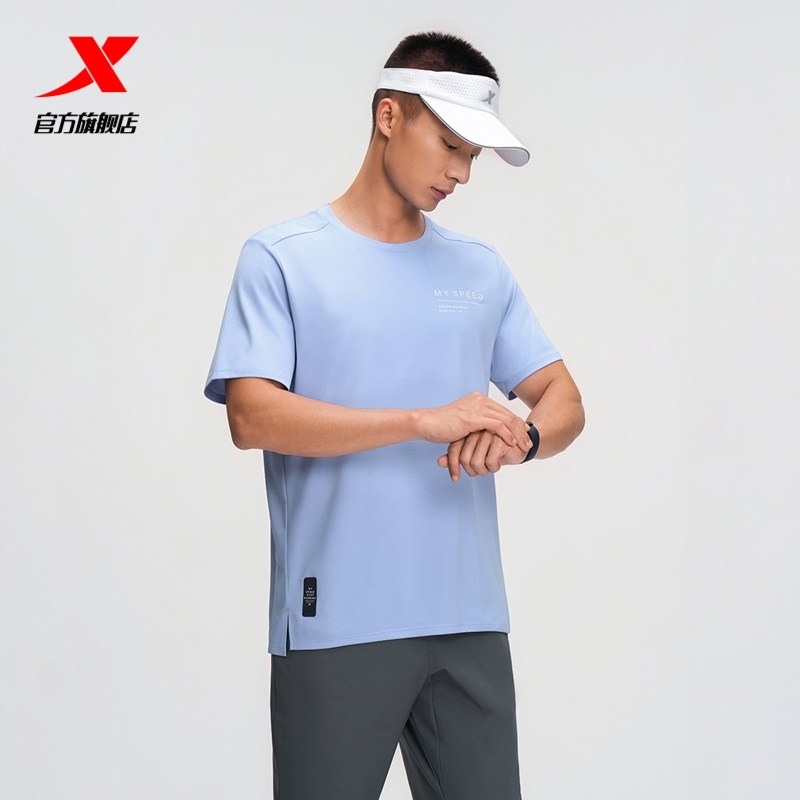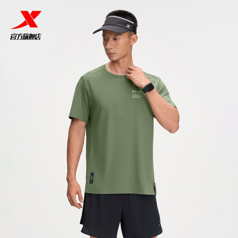 特步跑步T恤男士2025年夏季新款半袖训练服运动短袖975329010420