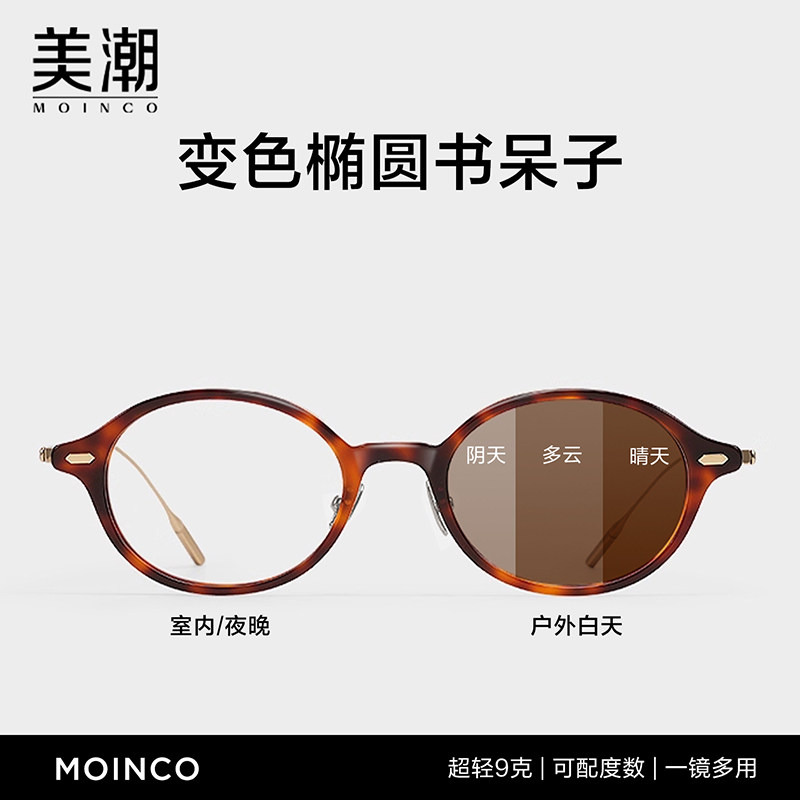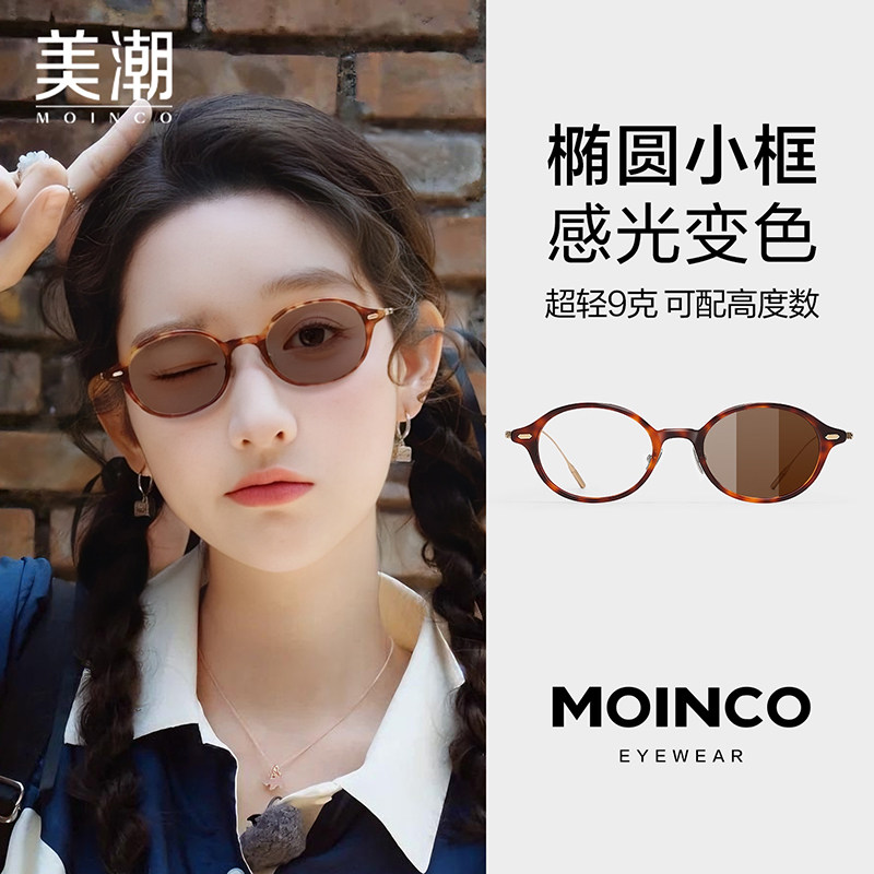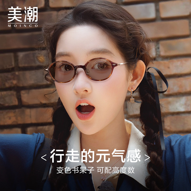 感光变色眼镜女可配高度数超轻复古玳瑁色书呆子椭圆小框近视镜架
