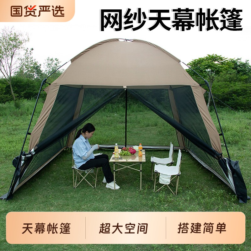 户外蚊帐帐篷天幕一体式遮阳棚防雨防晒凉亭庭院露营防蚊虫网纱棚