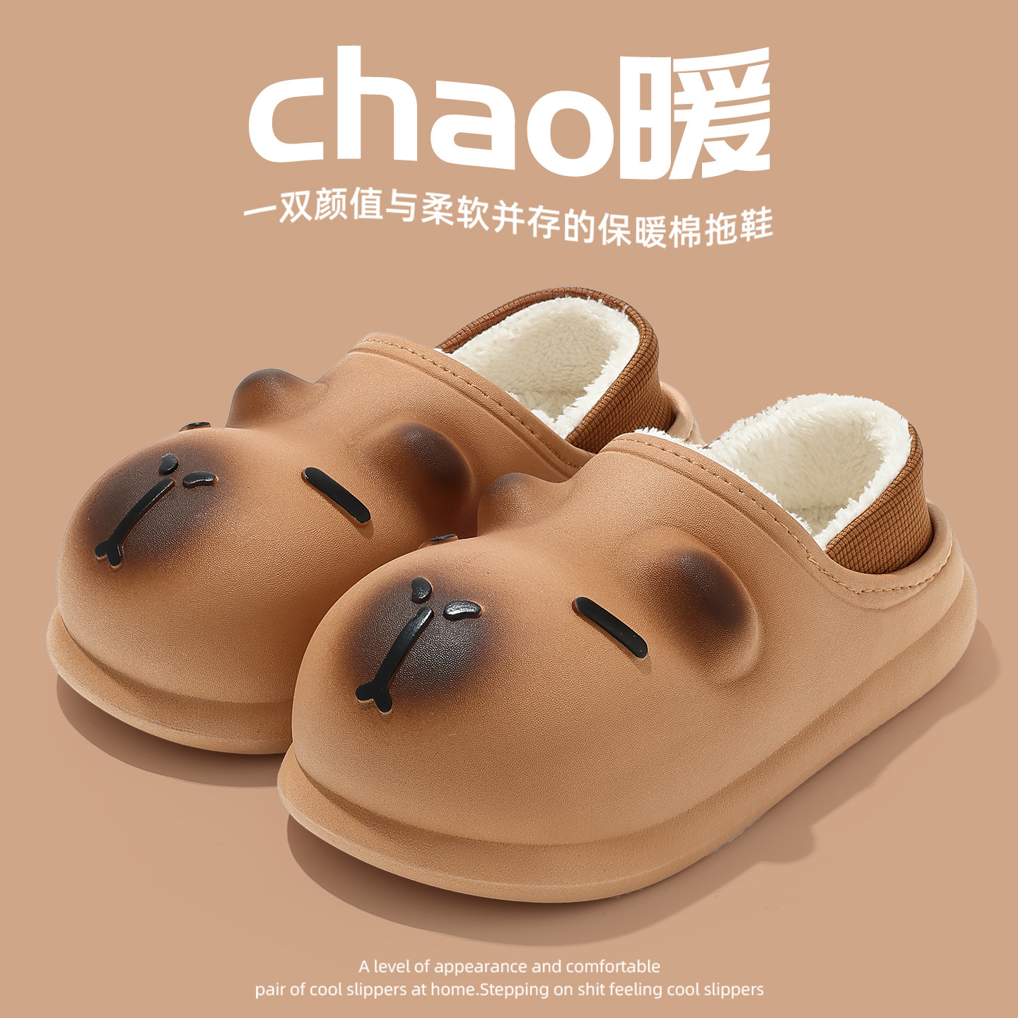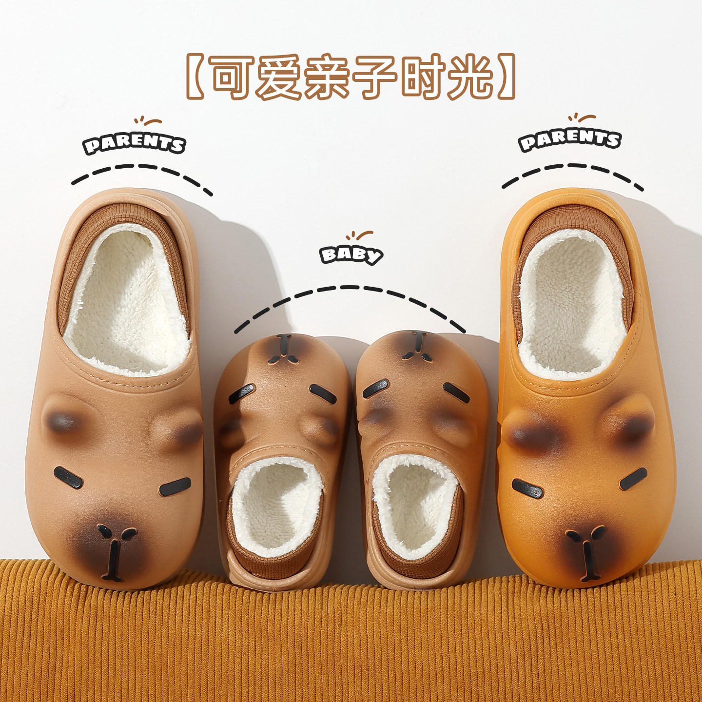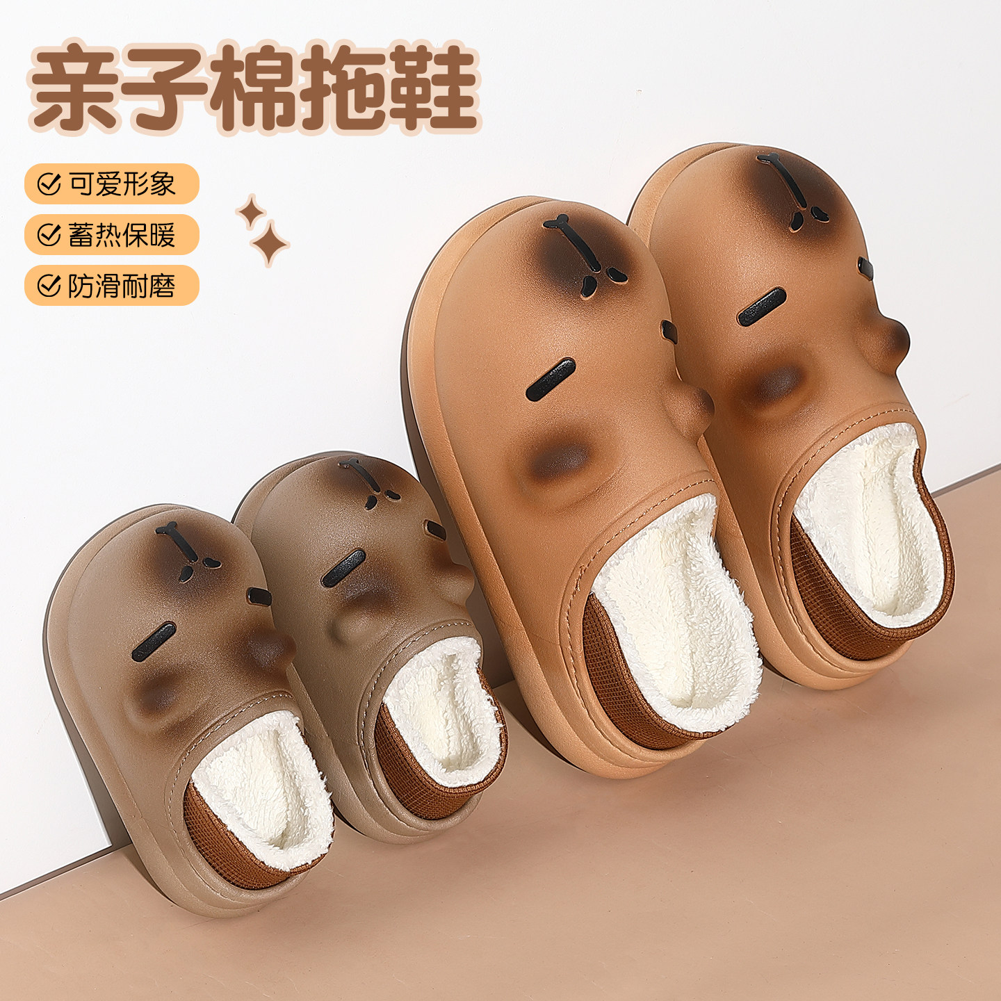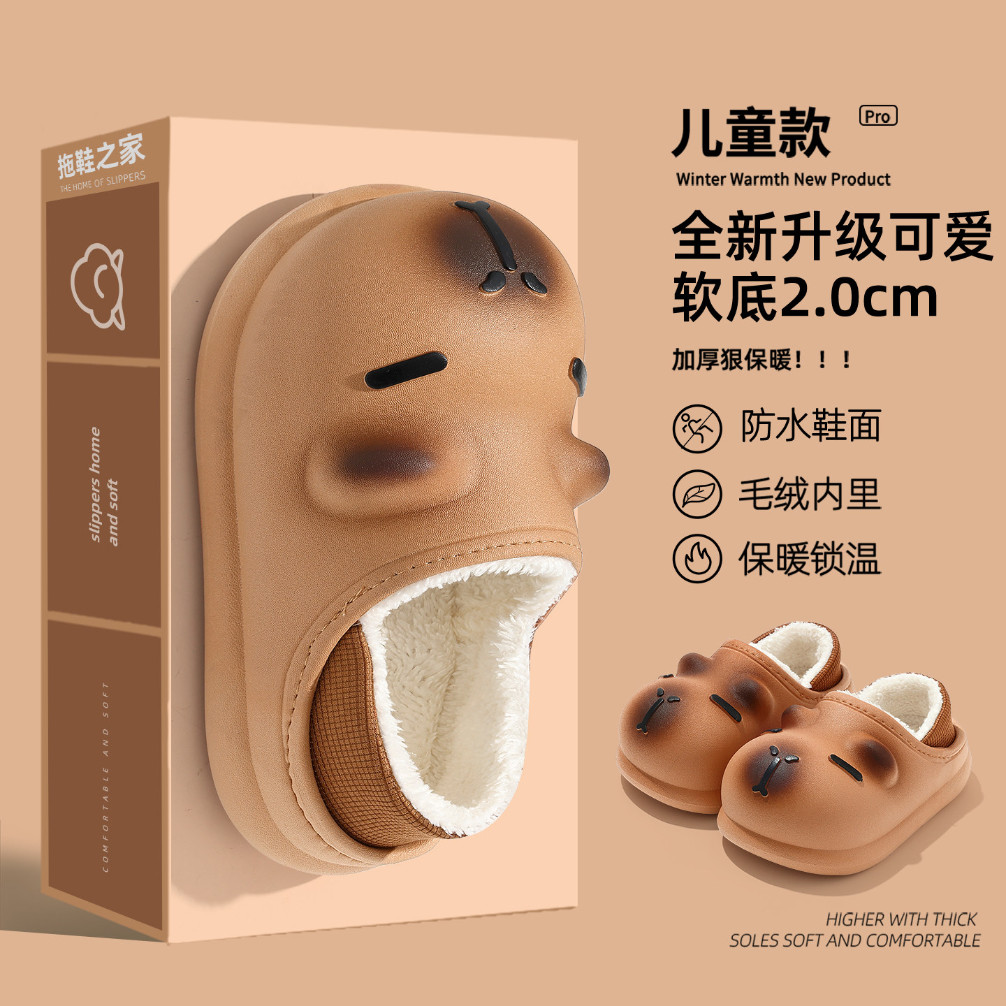 儿童防水棉拖鞋女童包跟冬季外穿加毛绒可爱卡通保暖亲子棉鞋男童