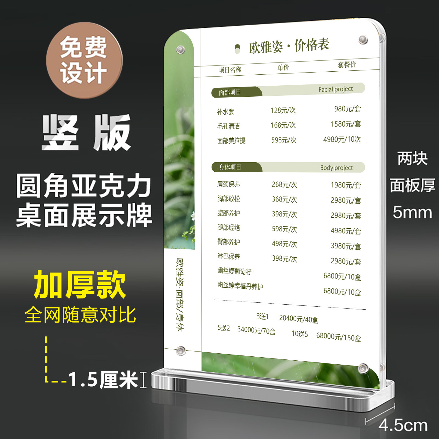 美容院价目表摆台美甲美睫美发价格表设计定制木质台卡展示牌桌牌