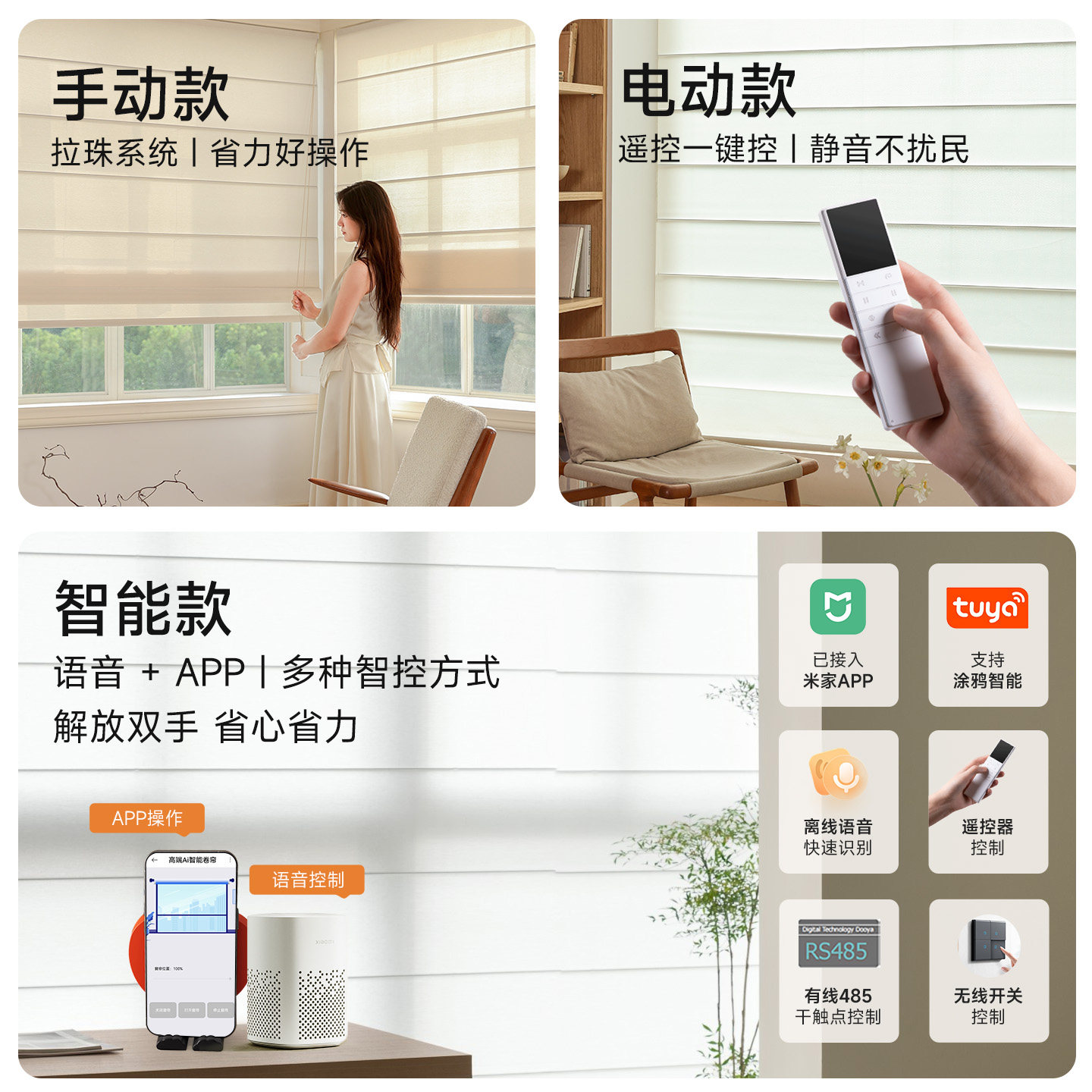 贵品罗马帘窗帘遮光2025年新款客厅餐厅书房阳台茶室电动卷帘折叠